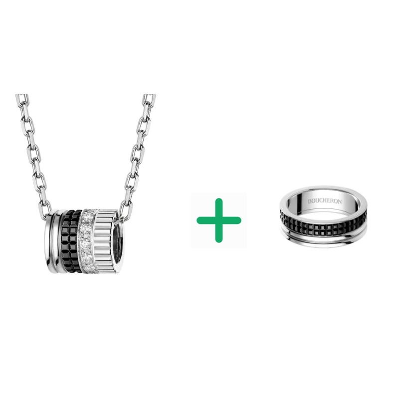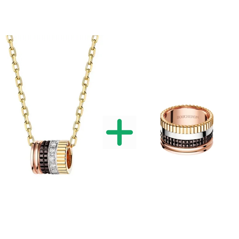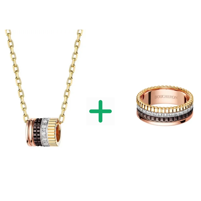 【ذهب عيار 18 مع علبة أصلية】طقم كاتر كلاسيك - Quatre Classique (قلادة + خاتم كبير)
