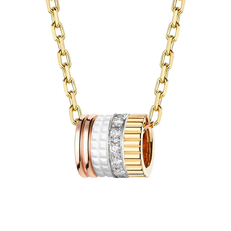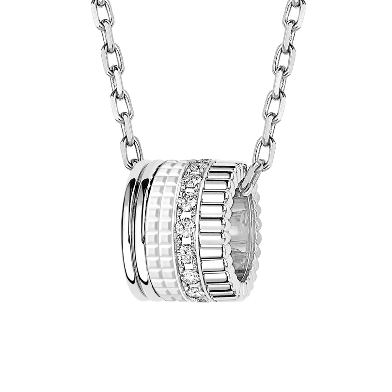 【ذهب عيار 18 مع علبة أصلية】قلادة كاتر دابل وايت إيديشن - Quatre Double White Edition، موديل كبير
