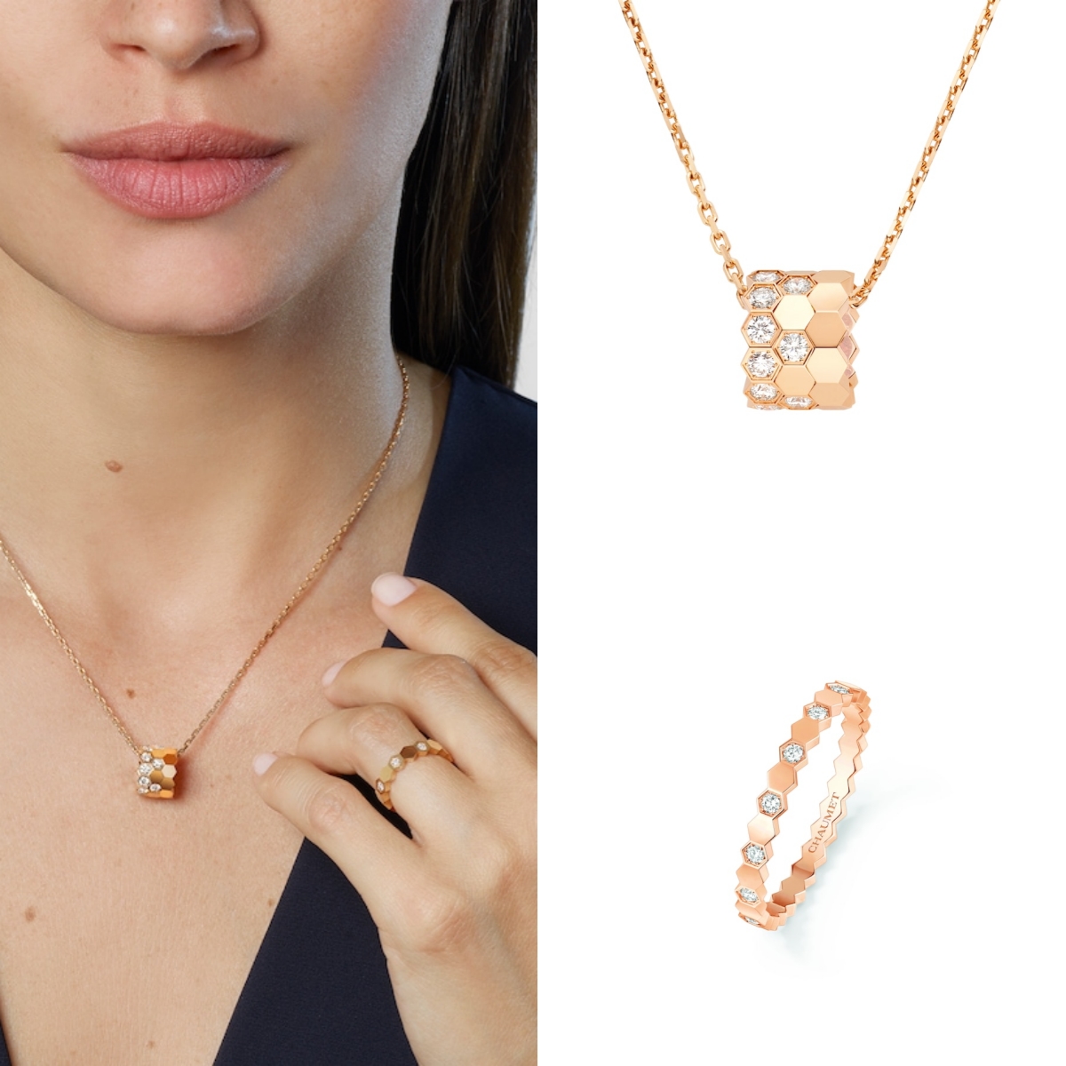 【ذهب عيار 18 مع علبة أصلية】طقم بي ماي لوف بالذهب الوردي: قلادة وخاتم، نموذج متوسط