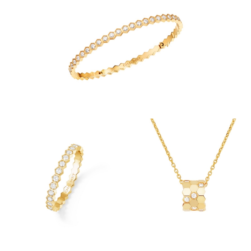 【ذهب عيار 18 مع علبة أصلية】سوار Bee My Love ثلاثي الأجزاء: مجموعة فاخرة تحتوي على سوار، خاتم، وقلادة