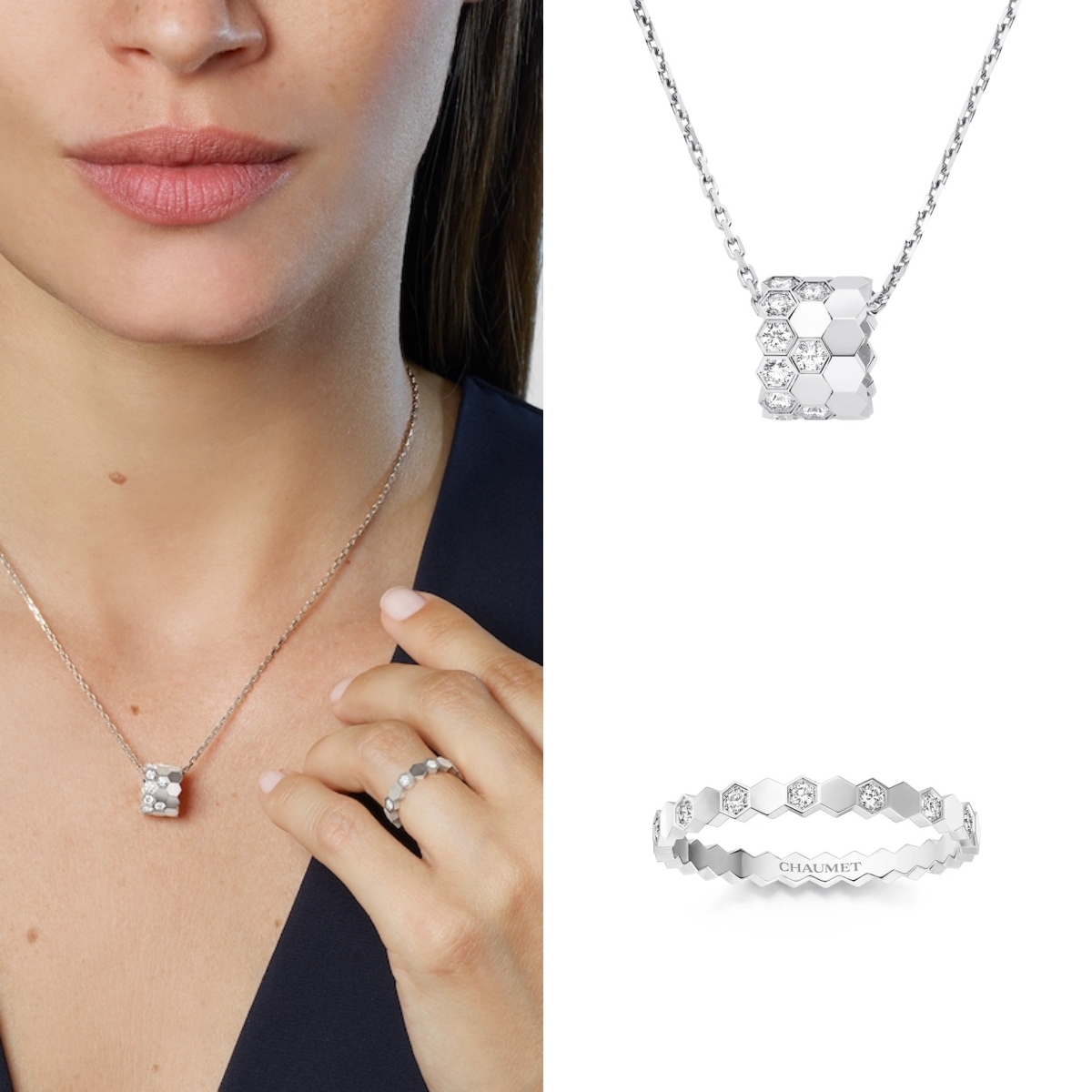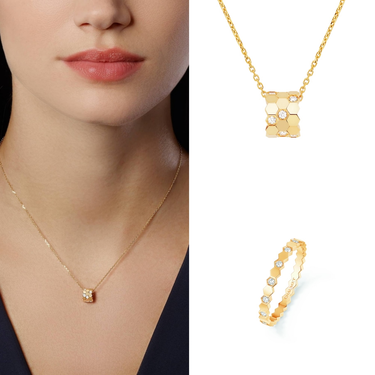 【ذهب عيار 18 مع علبة أصلية】طقم بي ماي لوف: قلادة وخاتم، نموذج متوسط