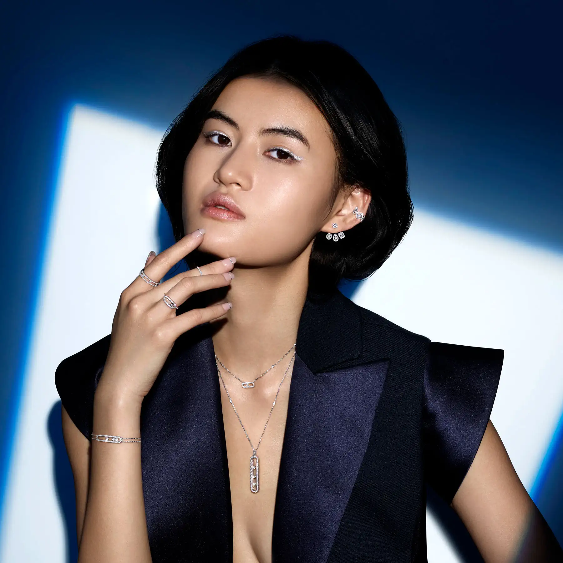 【ذهب عيار 18 مع علبة أصلية】قلادة الماس ذهب أبيض Messika