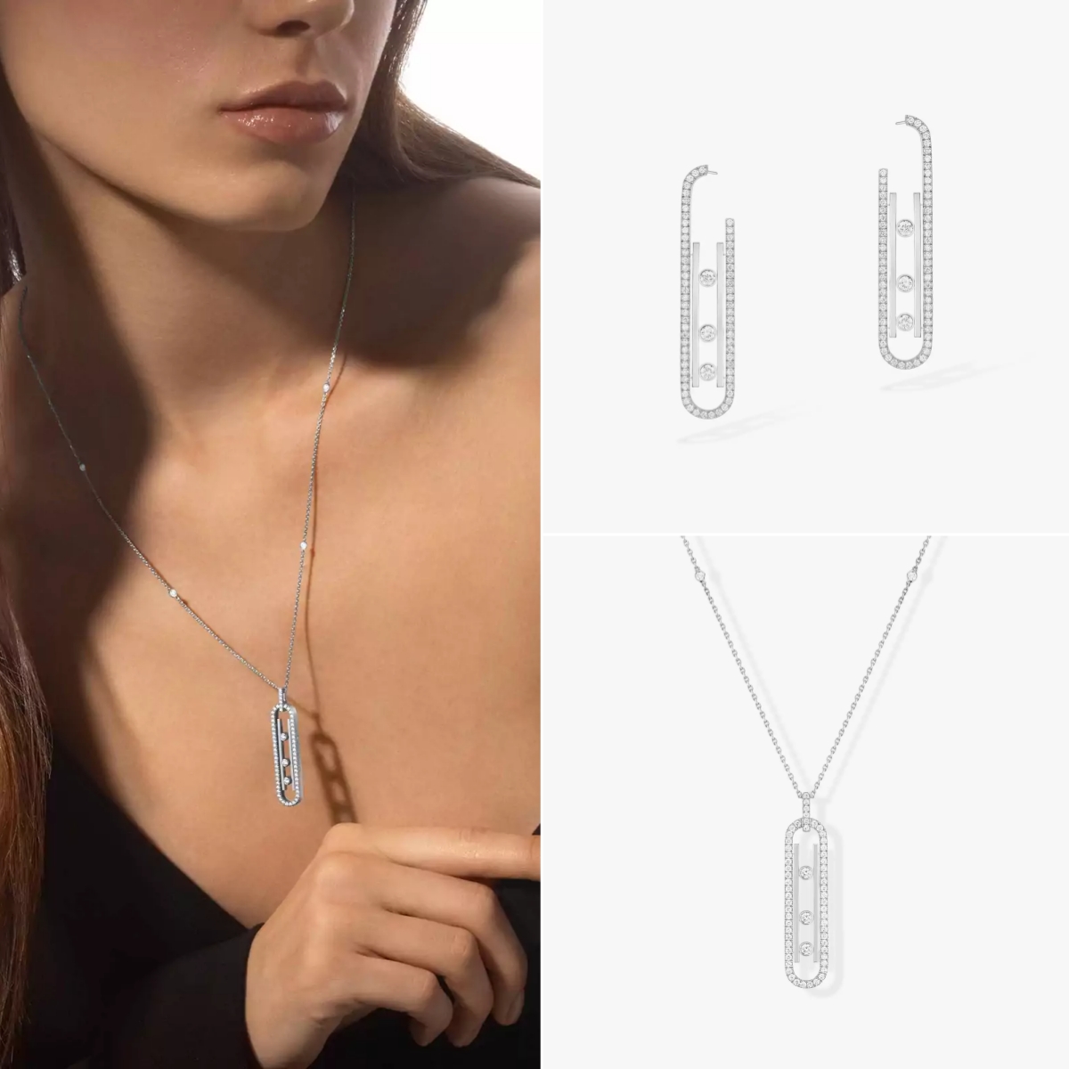 【ذهب عيار 18 مع علبة أصلية】مجموعة Move 10th: قلادة وأقراط أنيقة لإطلالة راقية