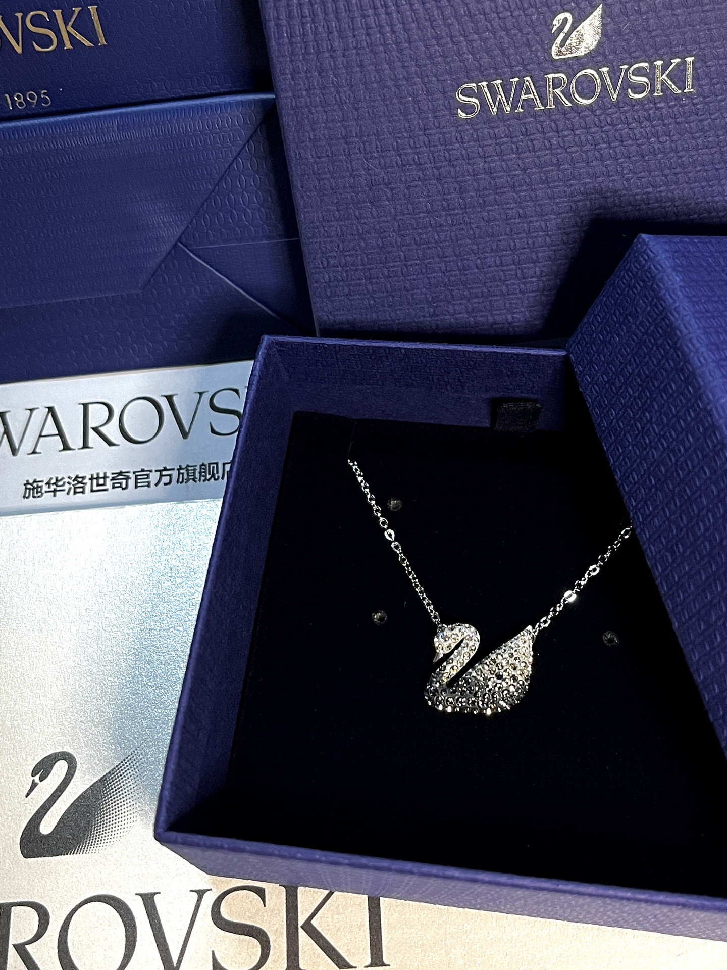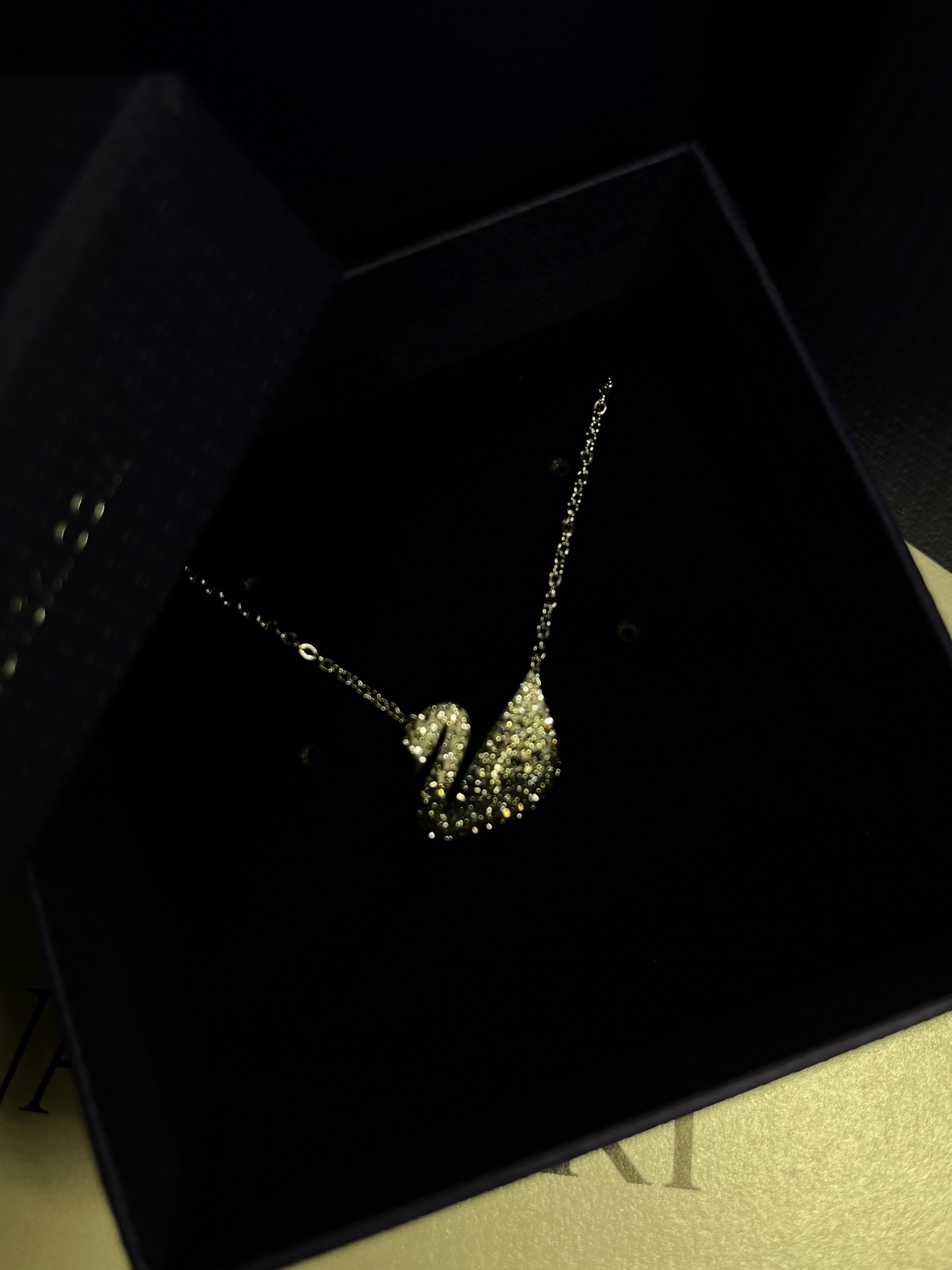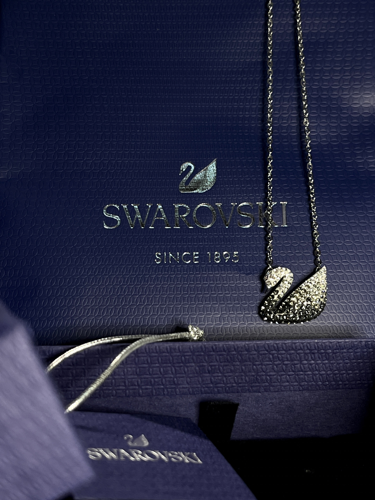 【ذهب عيار 18 مع علبة أصلية】قلادة متدرجة من سواروفسكي باللونين الأبيض والأسود
