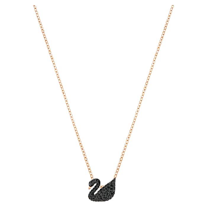 【ذهب عيار 18 مع علبة أصلية】قلادة Swarovski Swan على شكل بجعة، لون أسود، طلاء ذهبي وردي
