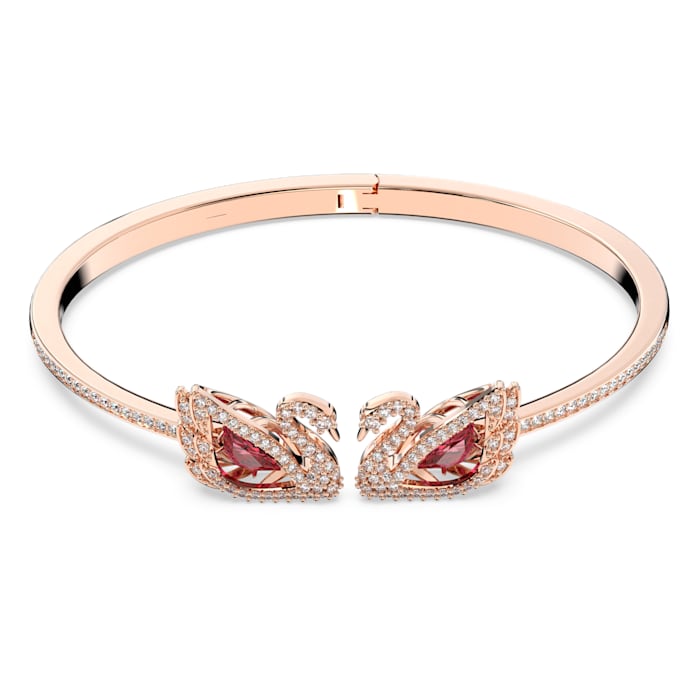 【ذهب عيار 18 مع علبة أصلية】قلادة Swarovski Swan الكلاسيكية باللون الوردي