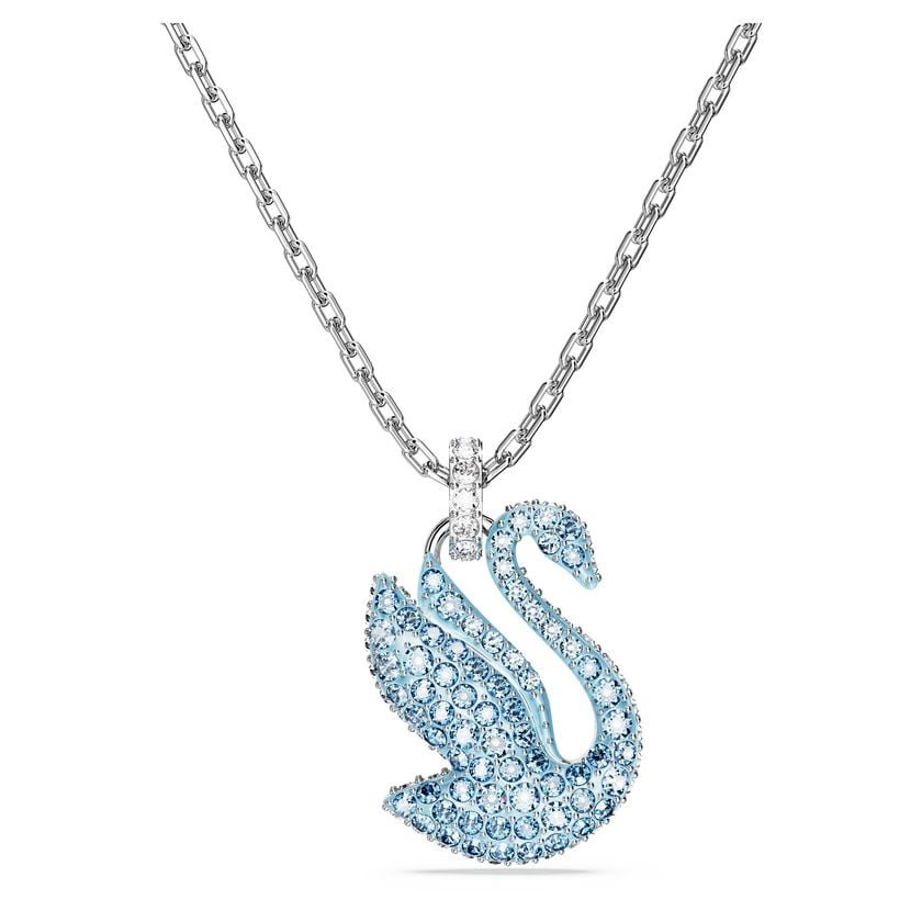 【ذهب عيار 18 مع علبة أصلية】قلادة Swan على شكل بجعة، حجم متوسط، لون أزرق، طلاء روديوم