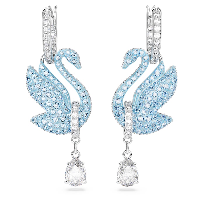 【ذهب عيار 18 مع علبة أصلية】طقم Swan على شكل بجعة، لون أزرق، طلاء روديوم