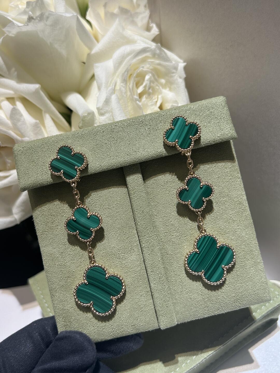 أقراط أذن ماجيك ألامبرا، 3 حلي زخرفية، ذهب أصفر 18 قيراط، مالاكيت.