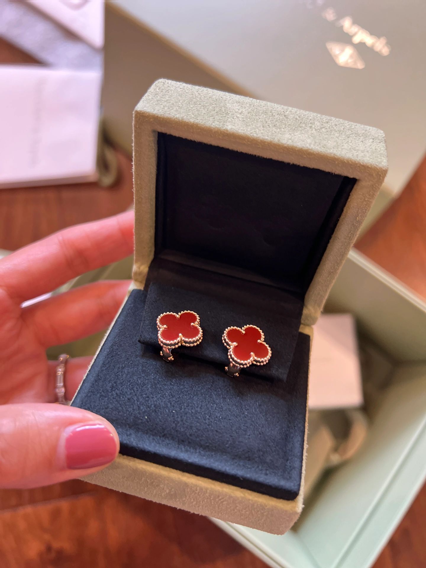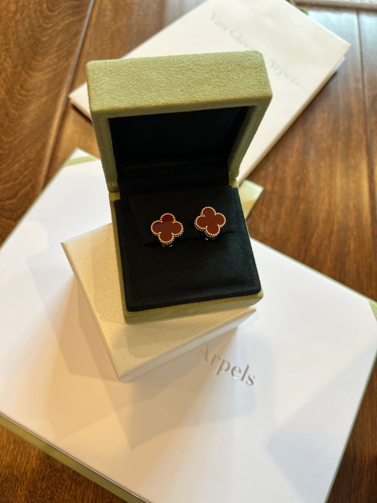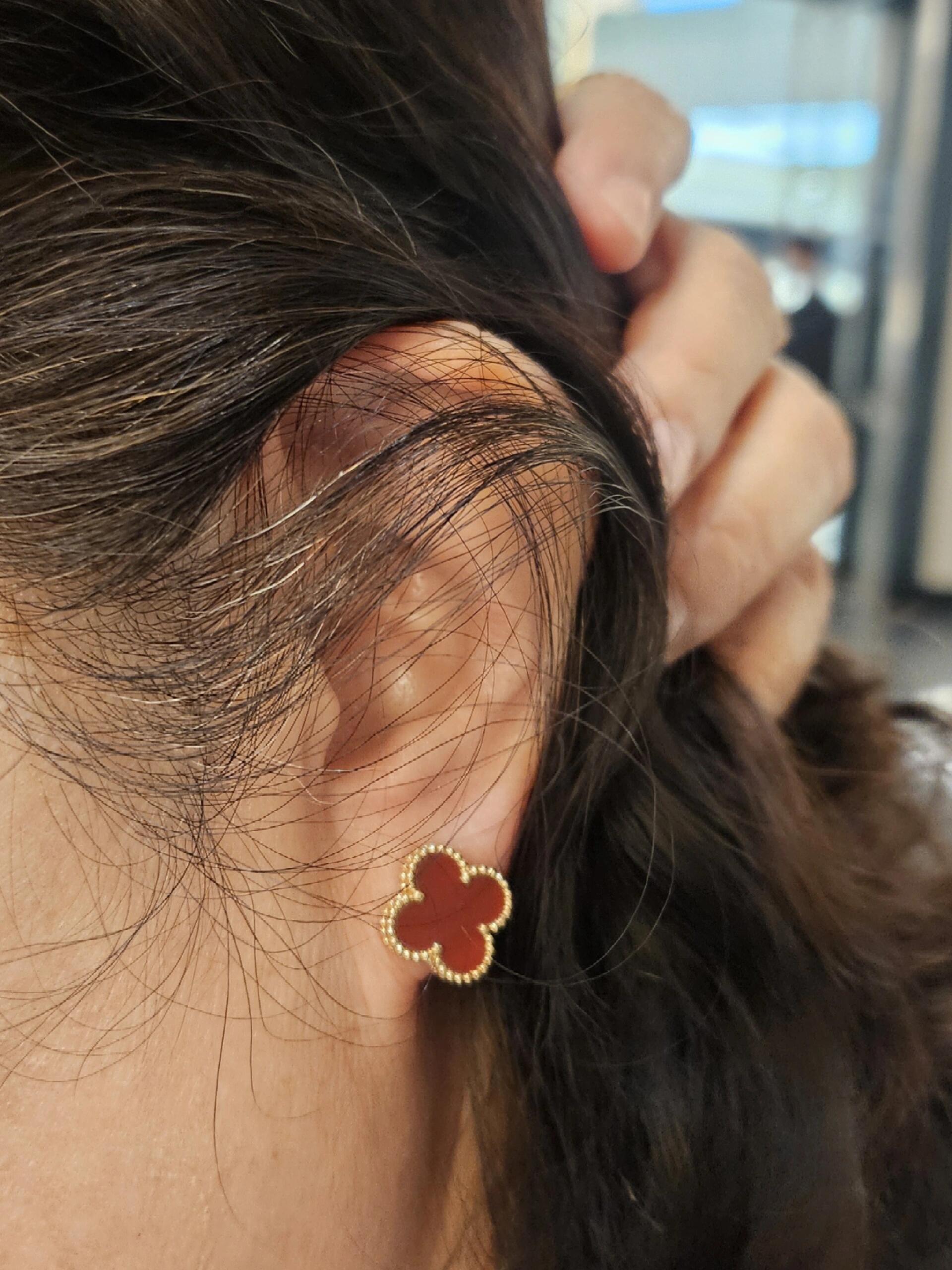 أقراط أذن فينتاج ألامبرا، ذهب أصفر 18 قيراط، عقيق أحمر.
