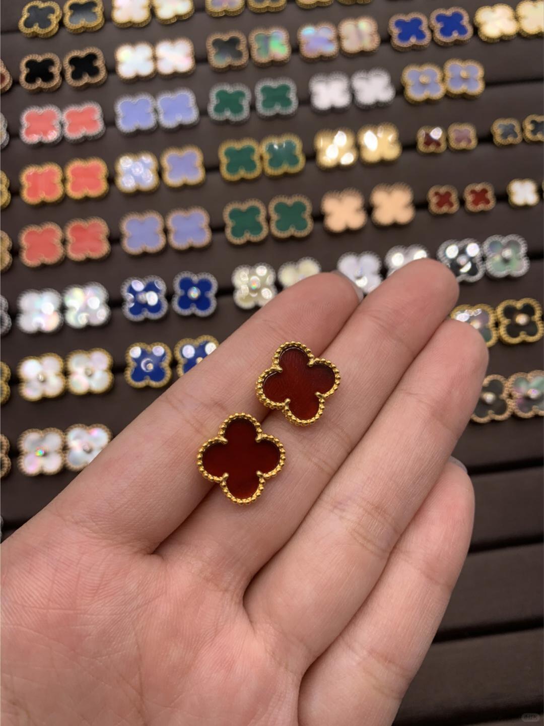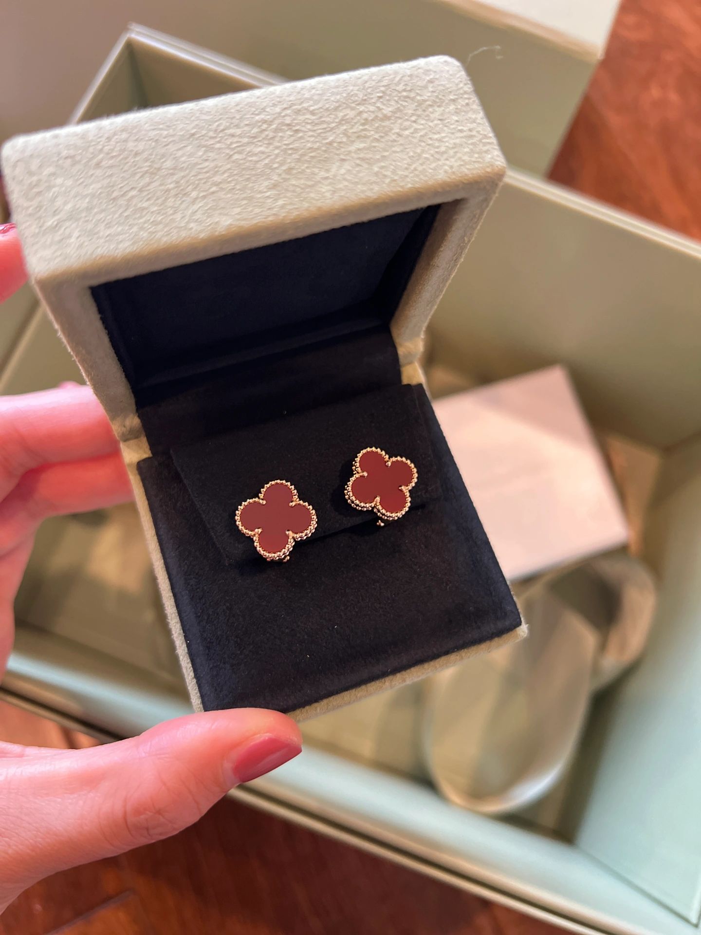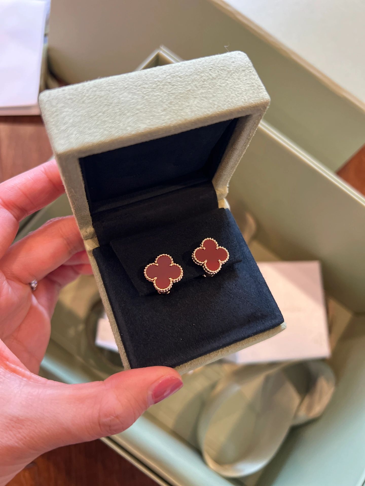 أقراط أذن فينتاج ألامبرا، ذهب أصفر 18 قيراط، عقيق أحمر.