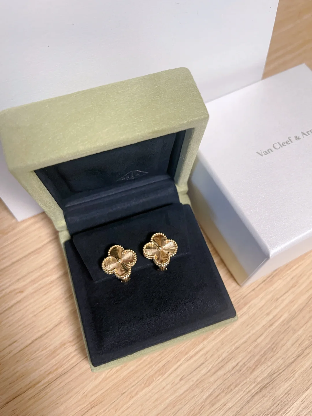 أقراط أذن فينتاج ألامبرا، ذهب أصفر 18 قيراط بزخرفة غيوشيه.