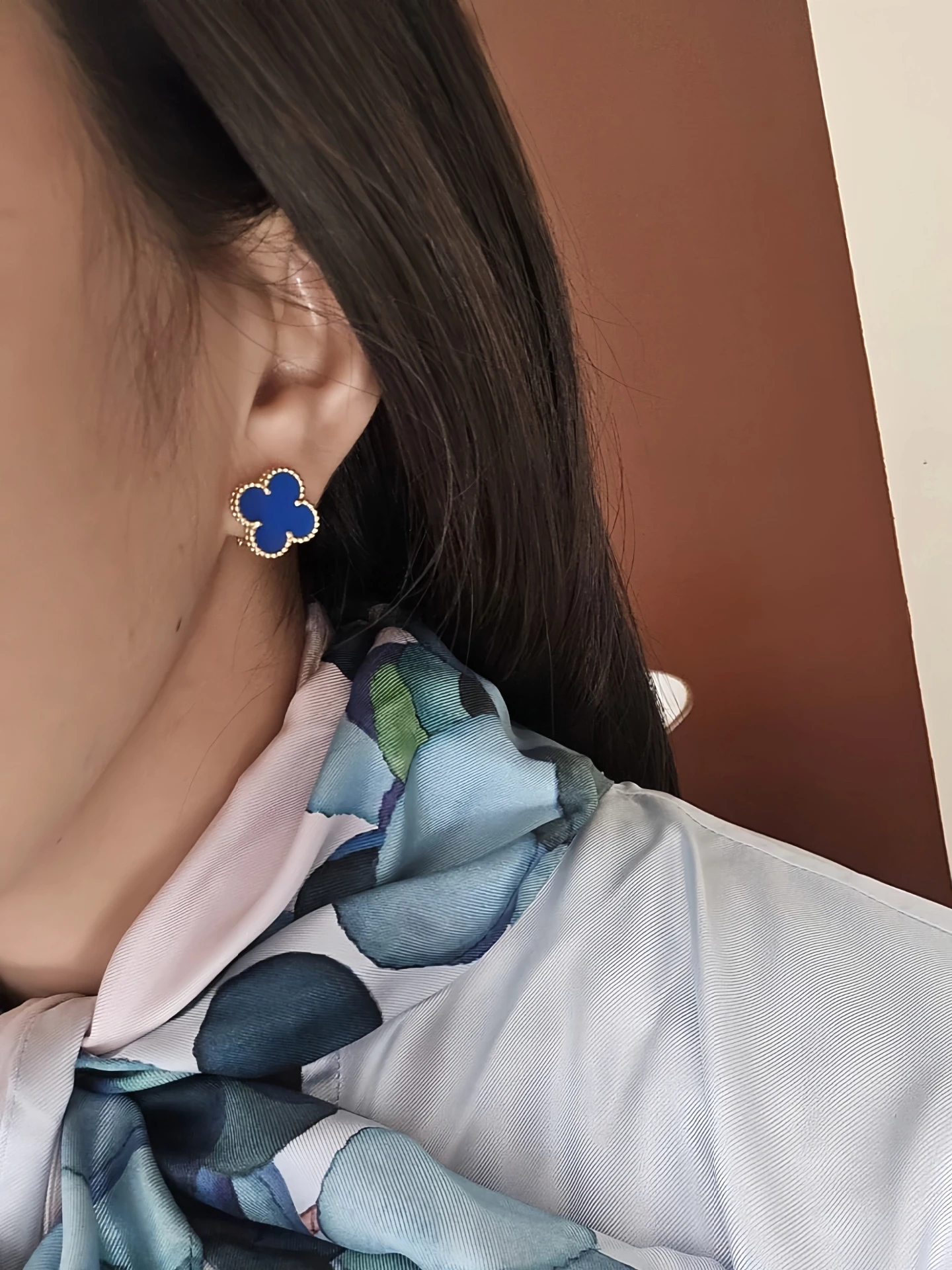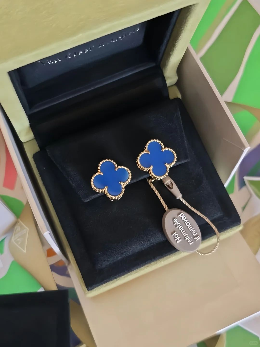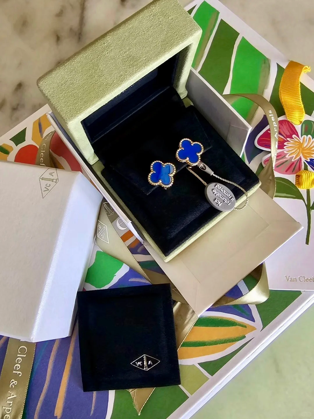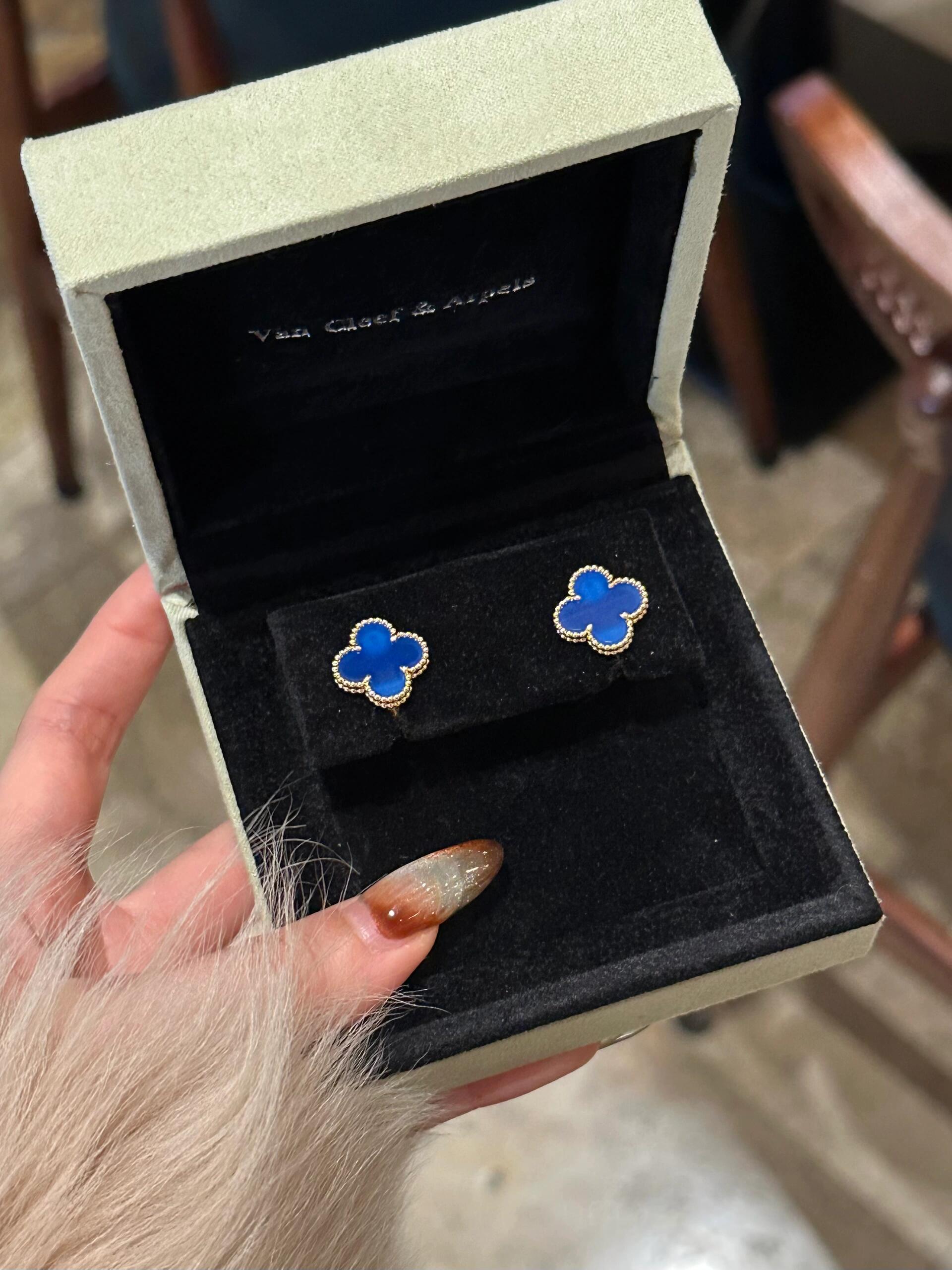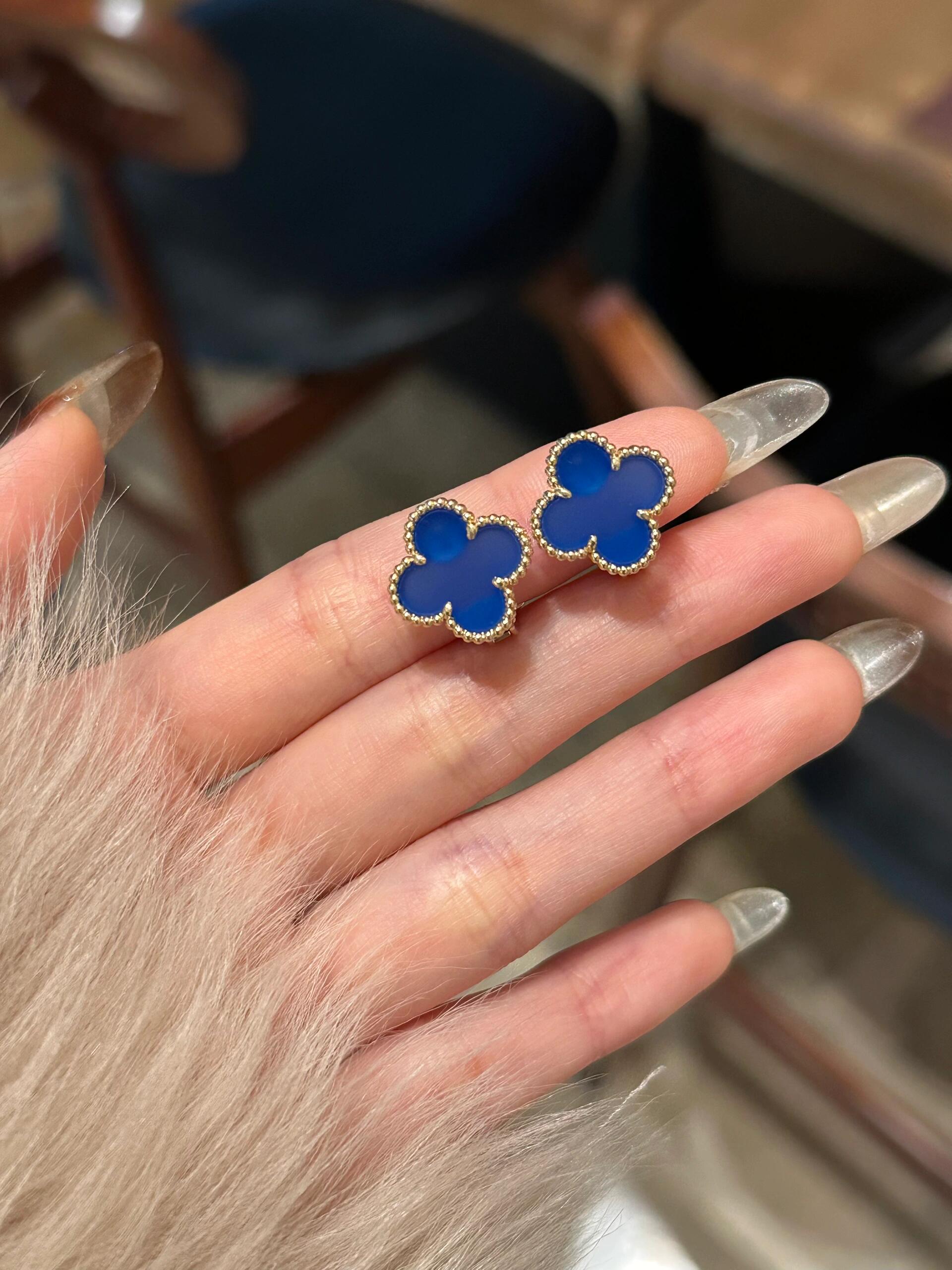 أقراط أذن فينتاج ألامبرا، ذهب أصفر عيار 18 قيراط، عقيق أزرق