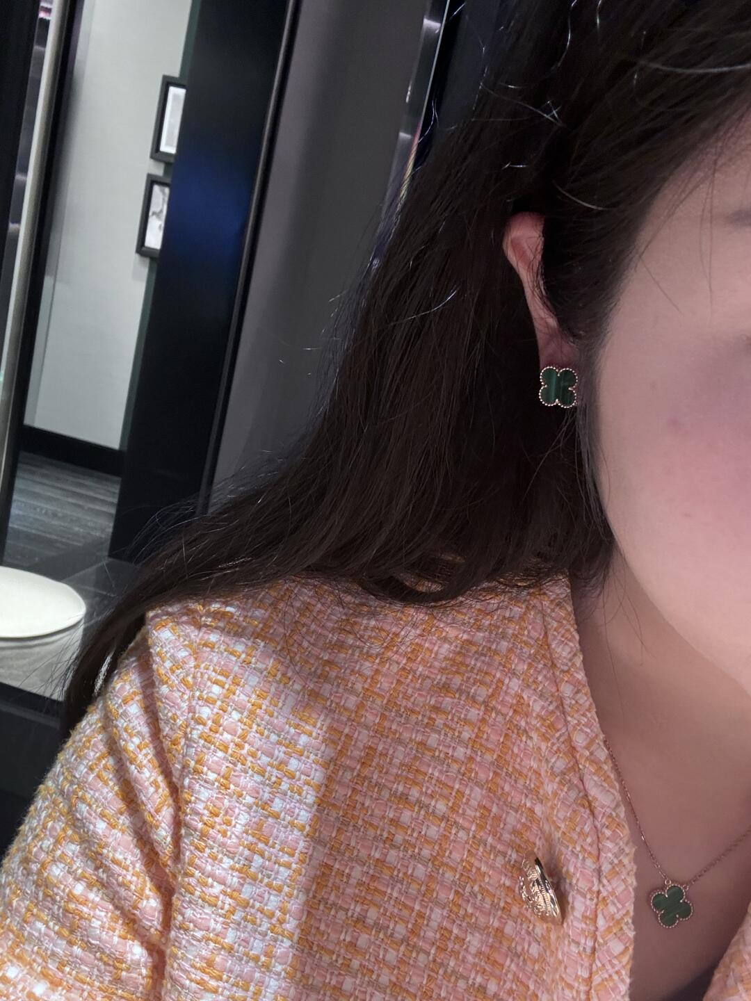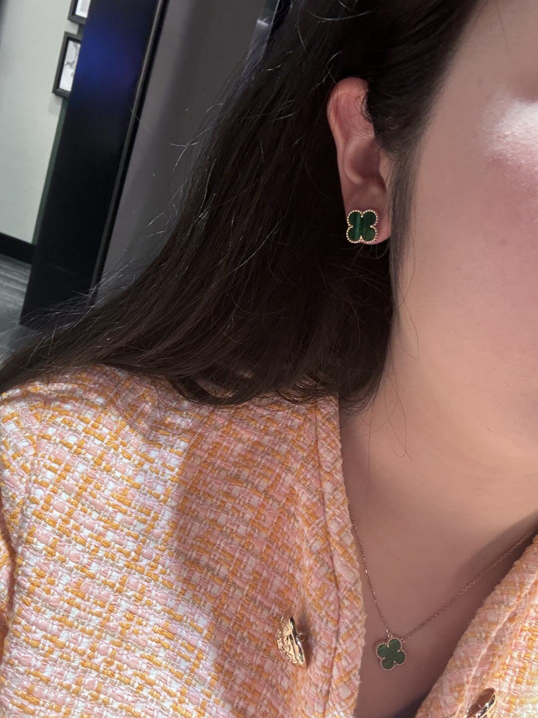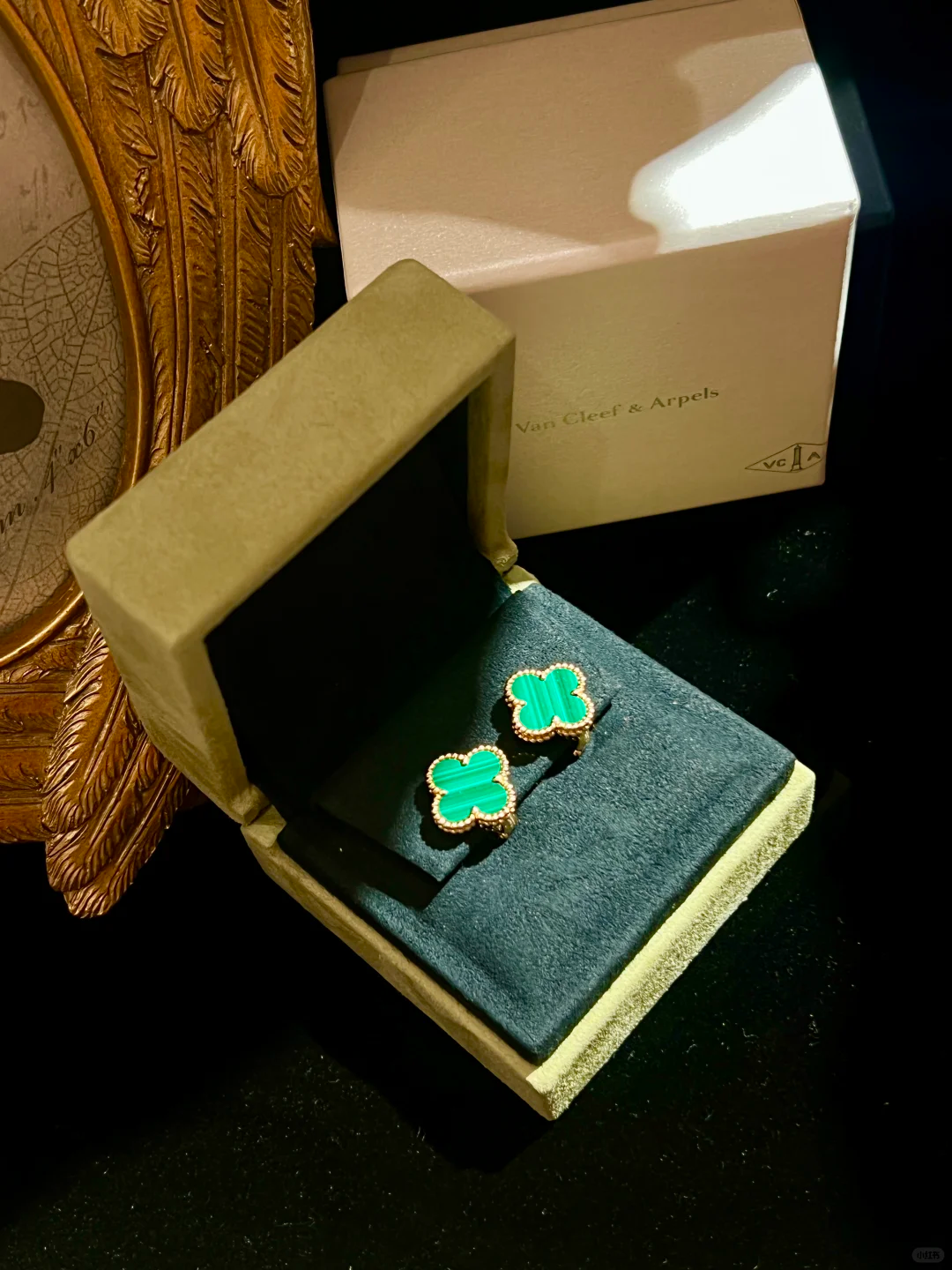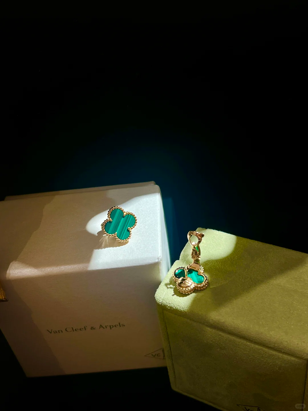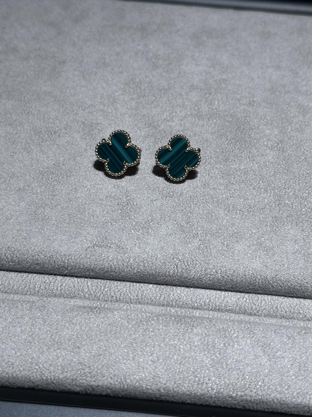 أقراط أذن فينتاج ألامبرا، ذهب أصفر 18 قيراط، مالاكيت.