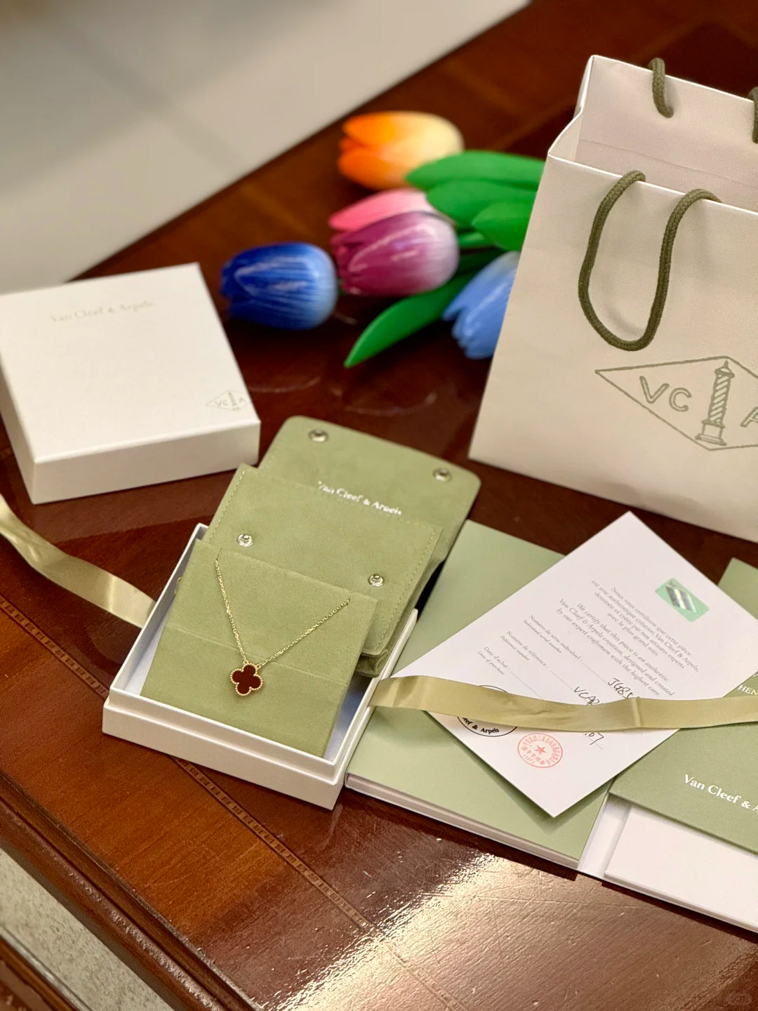 قلادة فينتاج ألامبرا، ذهب أصفر 18 قيراط، عقيق أحمر.