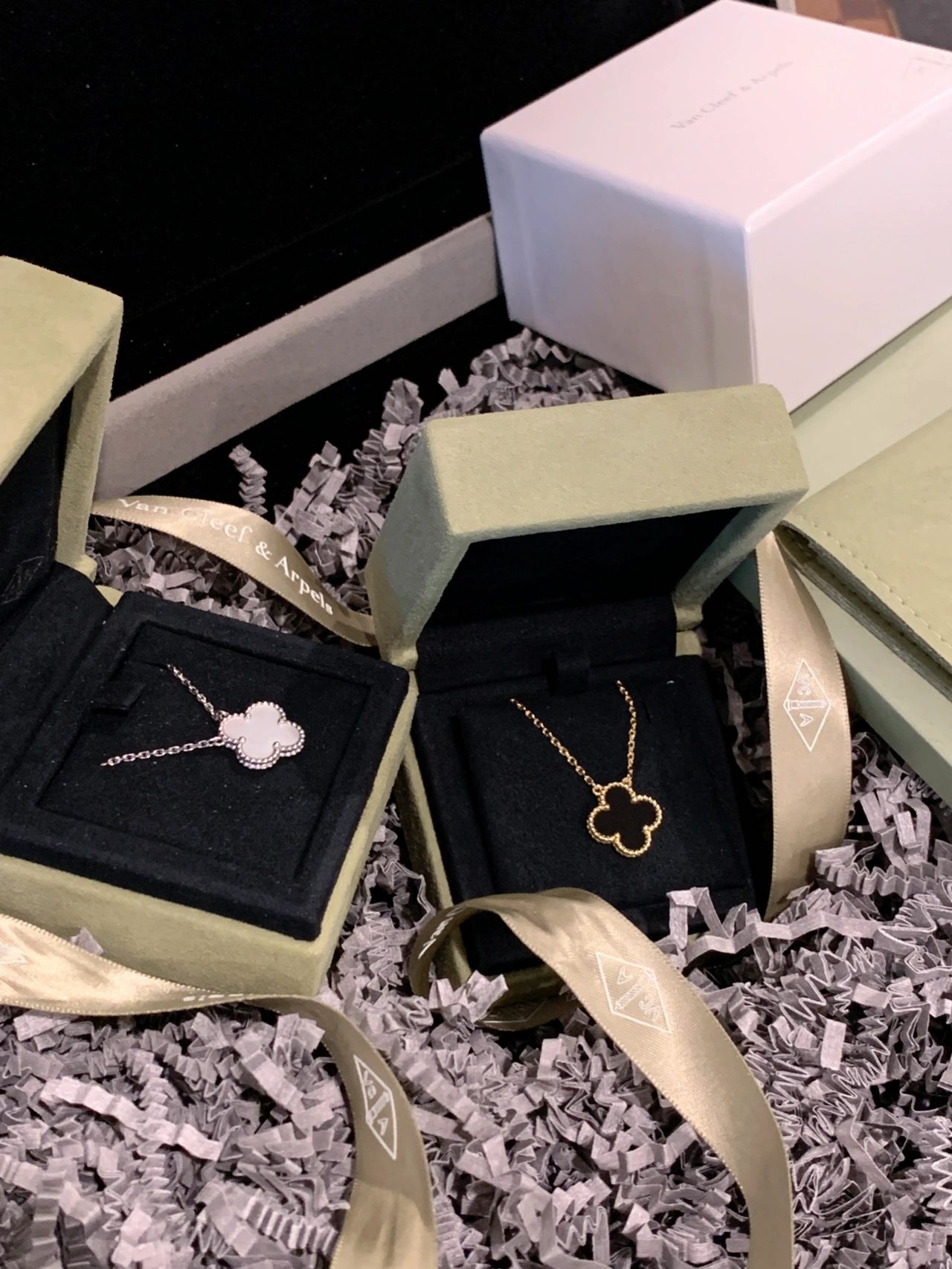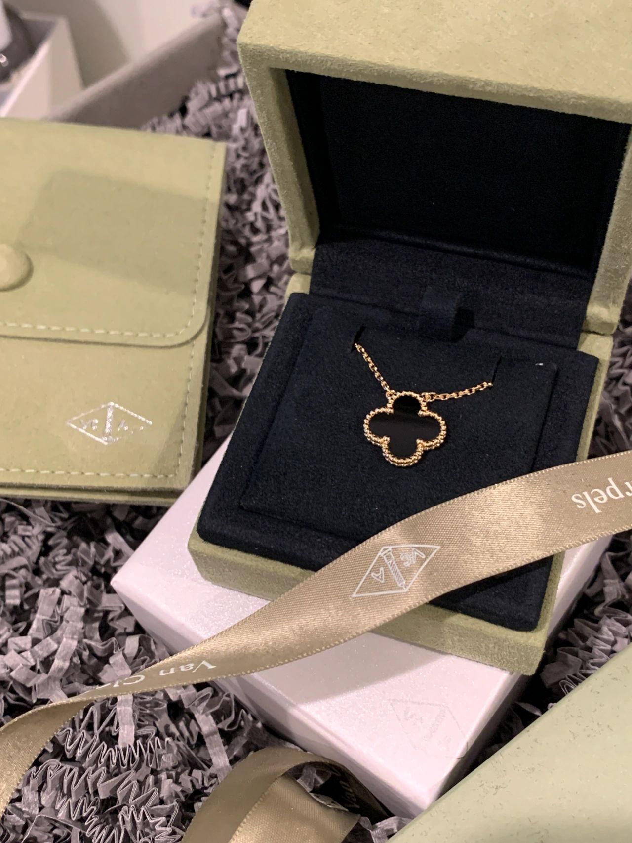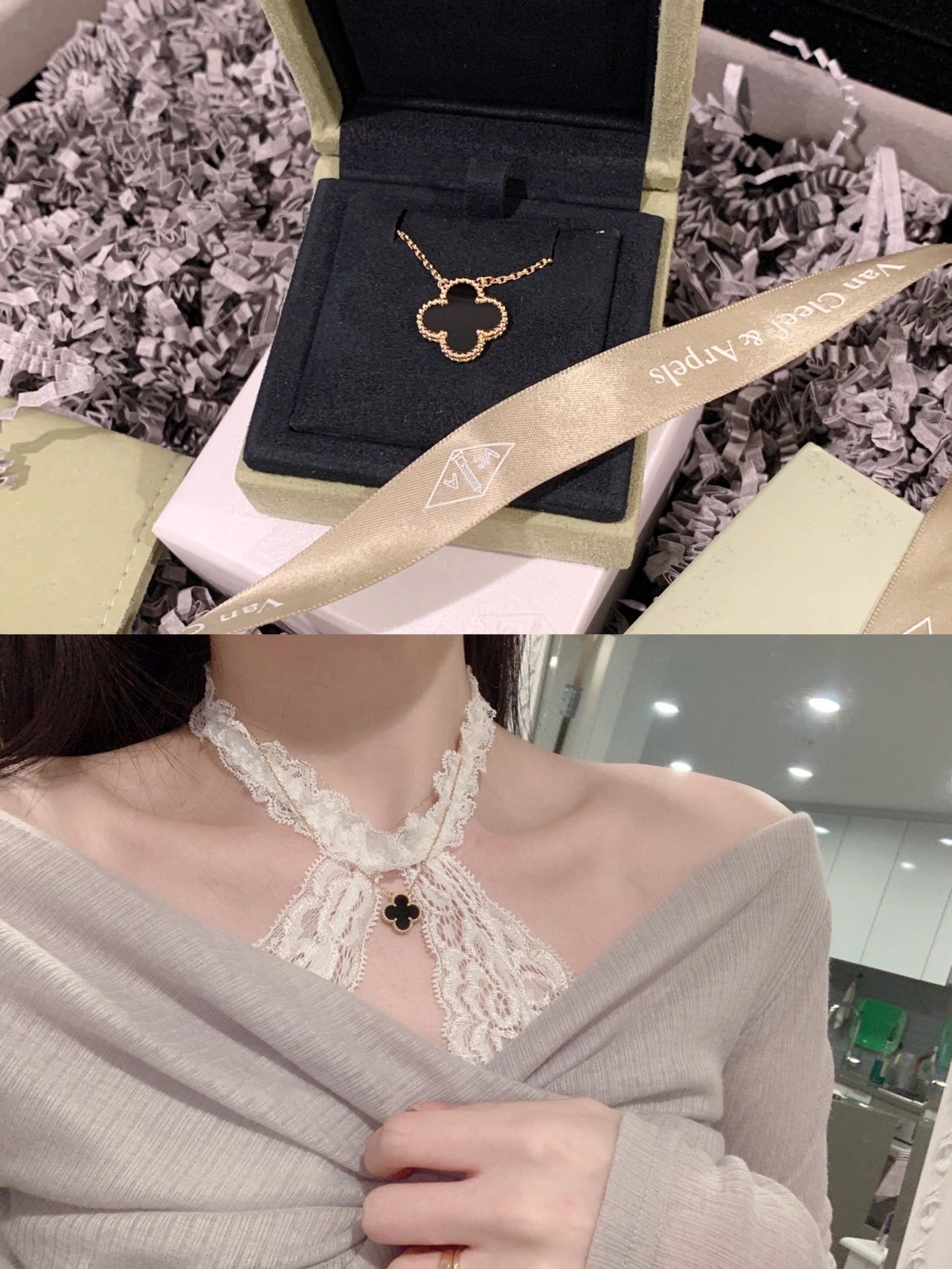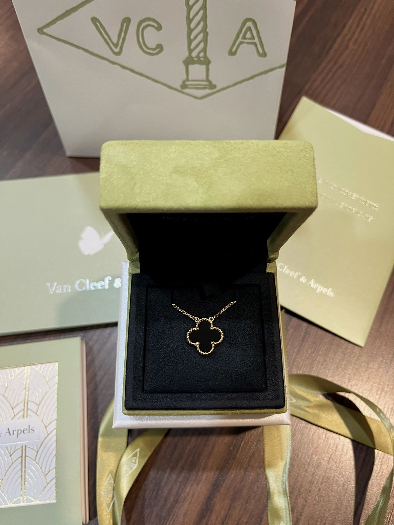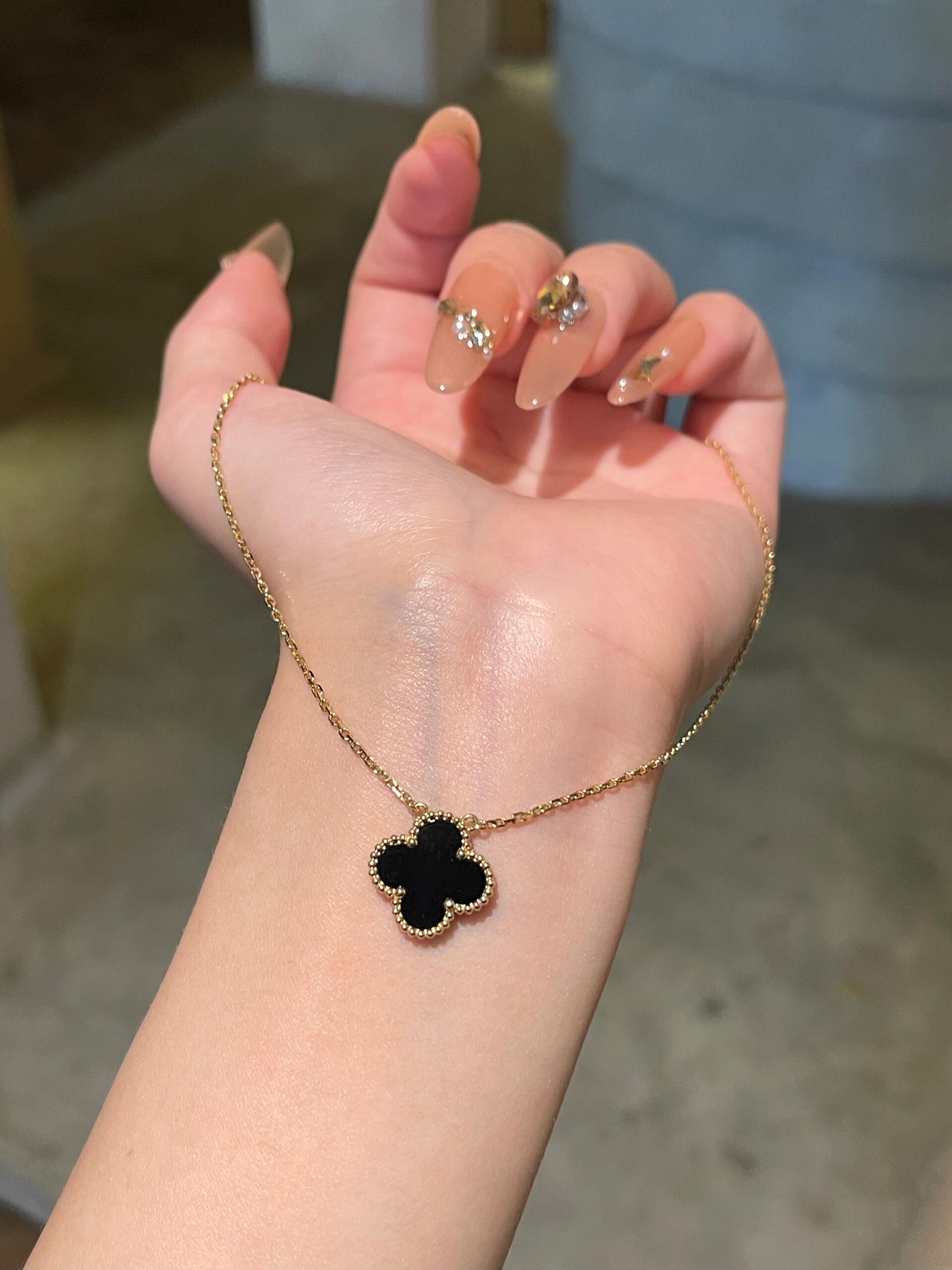 【ذهب عيار 18 مع علبة أصلية】قلادة فينتاج ألامبرا باللون الأسود