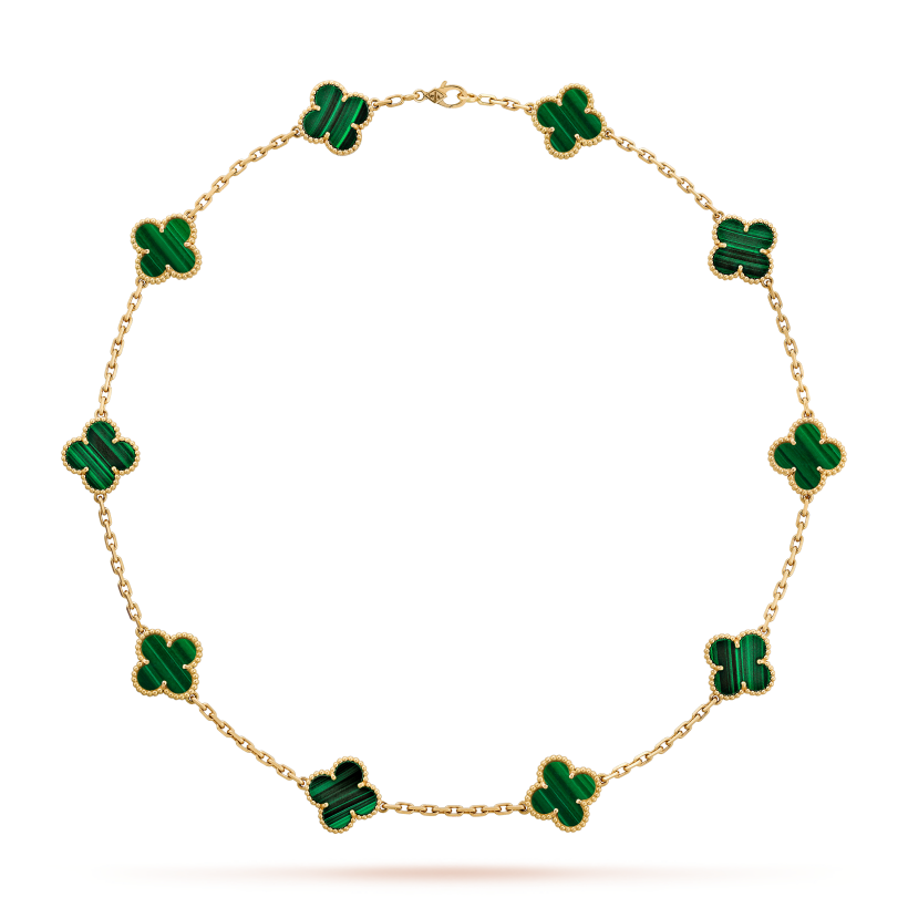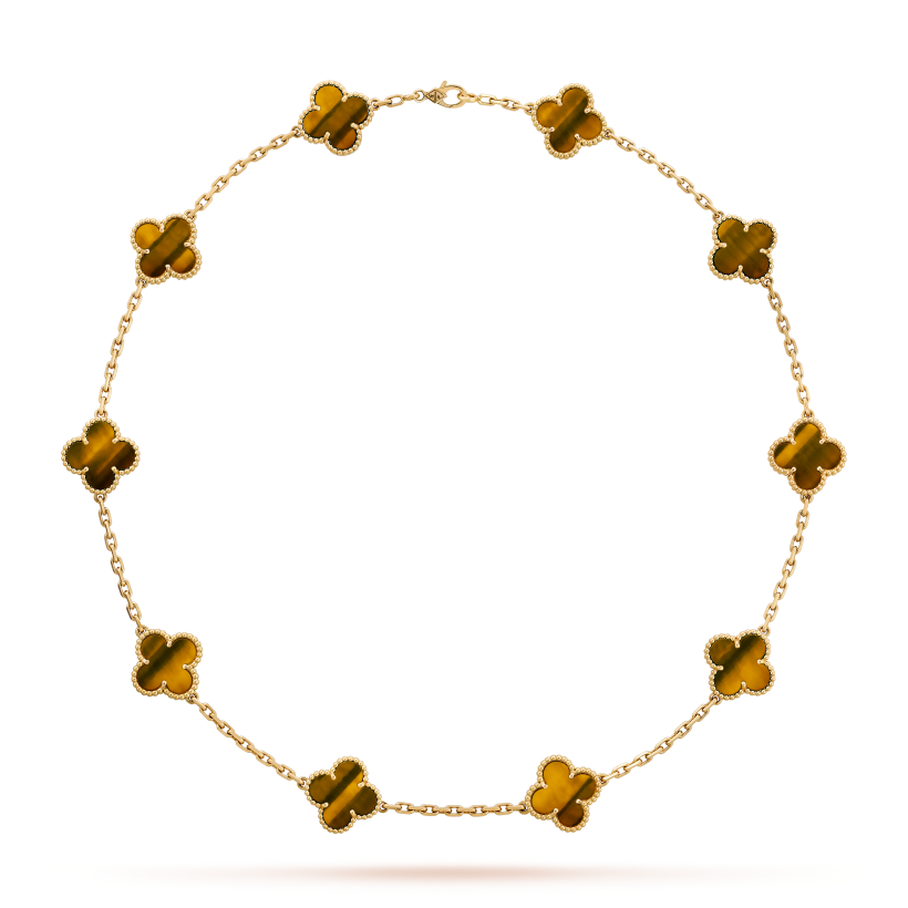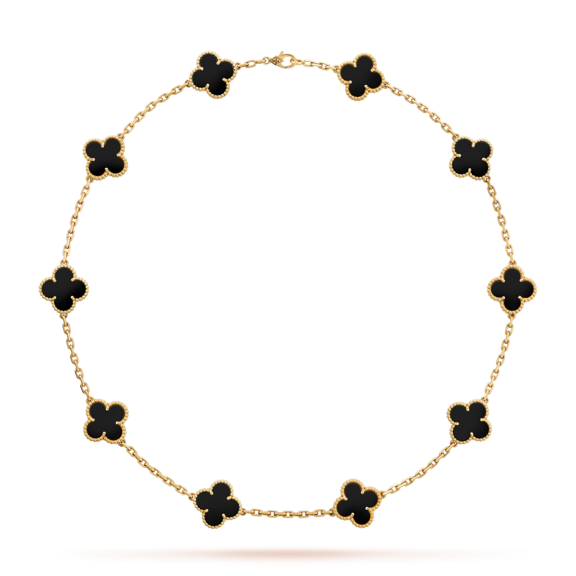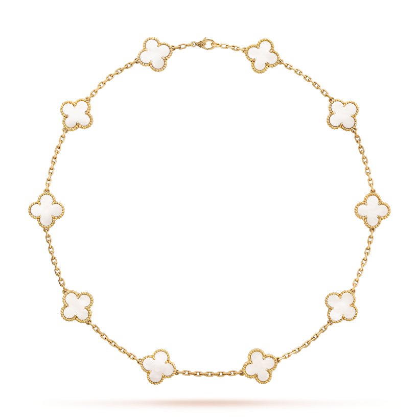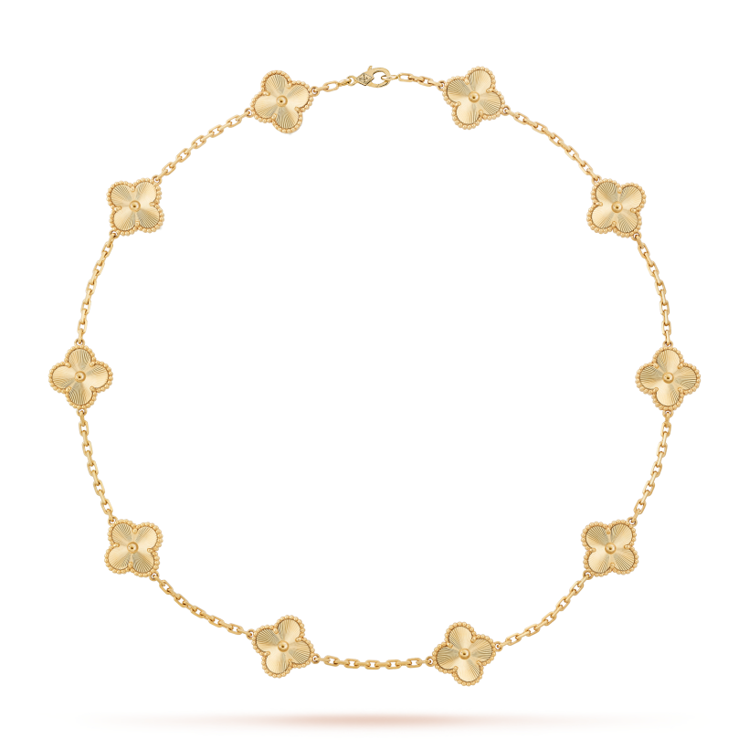 【ذهب عيار 18 مع علبة أصلية】عقد فينتاج ألامبرا، 10 حلي زخرفية
