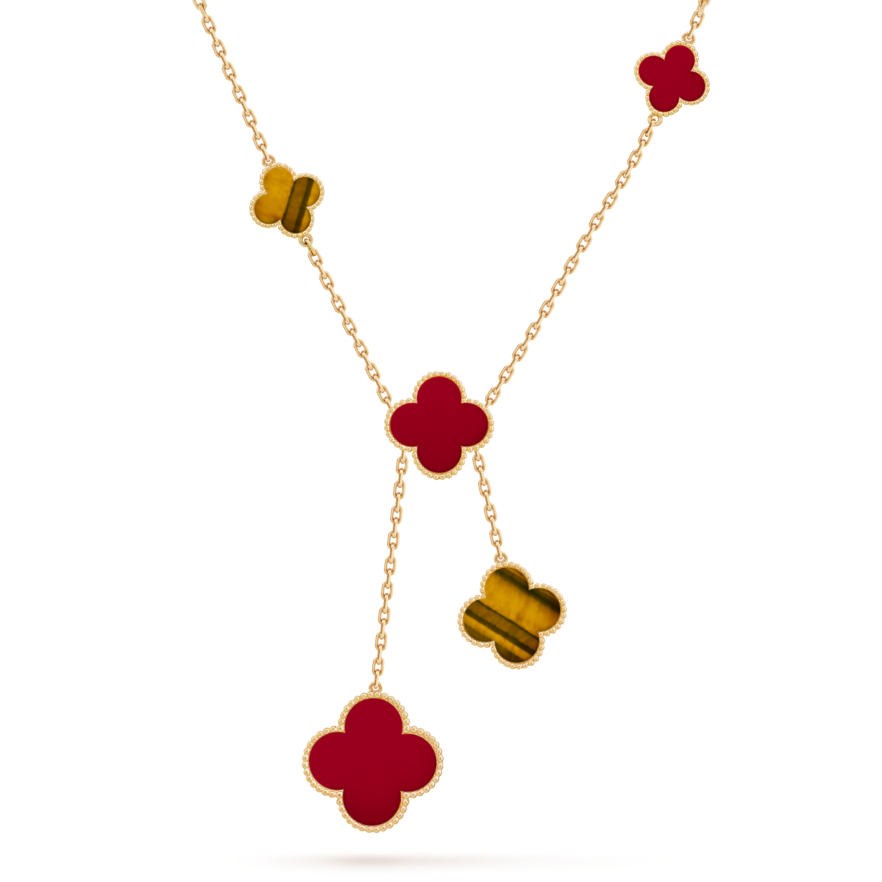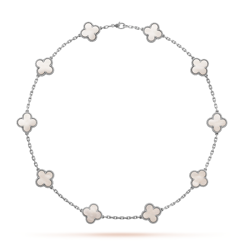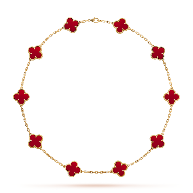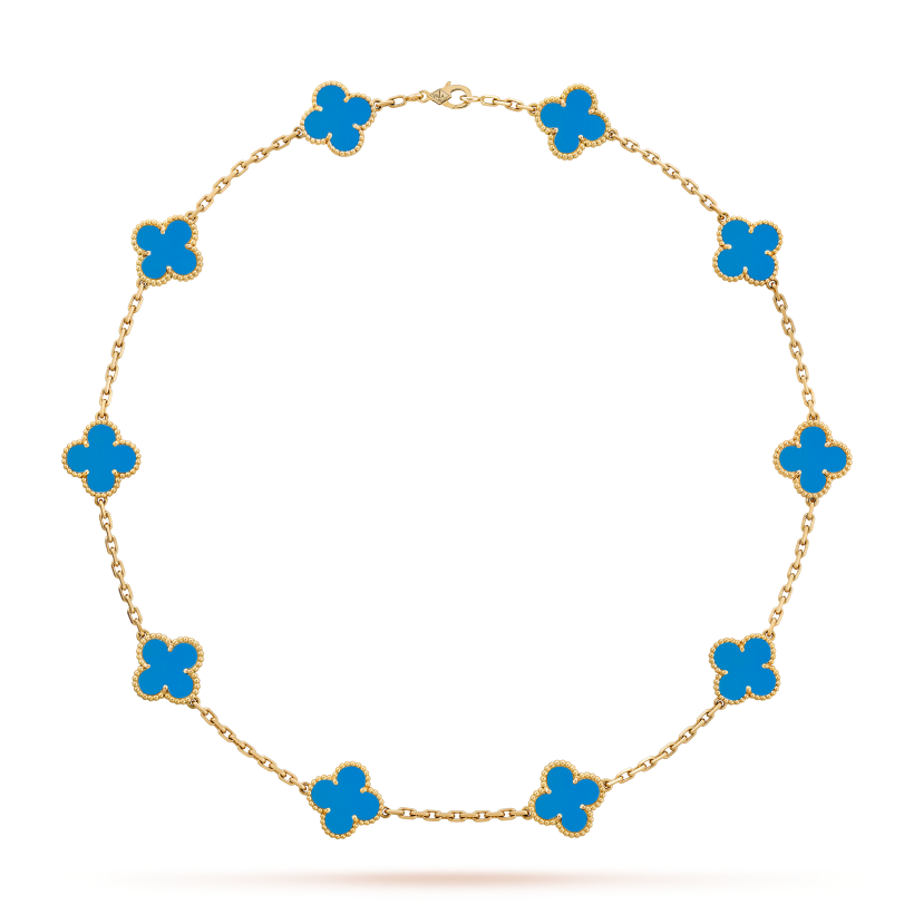 【ذهب عيار 18 مع علبة أصلية】عقد فينتاج ألامبرا، 10 حلي زخرفية