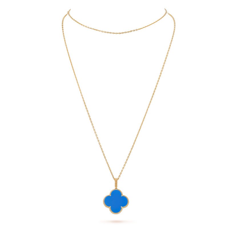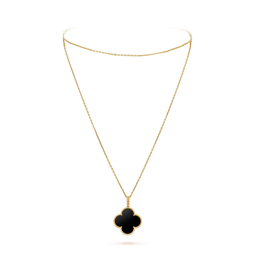 【ذهب عيار 18 مع علبة أصلية】عقد ماجيك ألامبرا الطويل، حلية واحدة زخرفية
