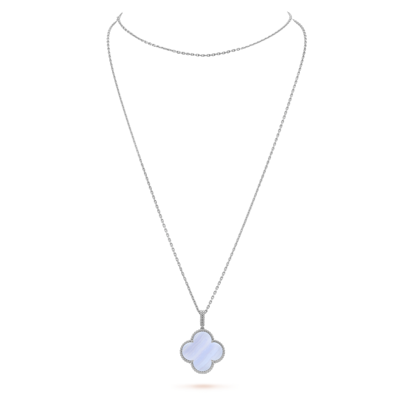 【ذهب عيار 18 مع علبة أصلية】قلادة فينتاج ألامبرا بحجر أبيض فاخر