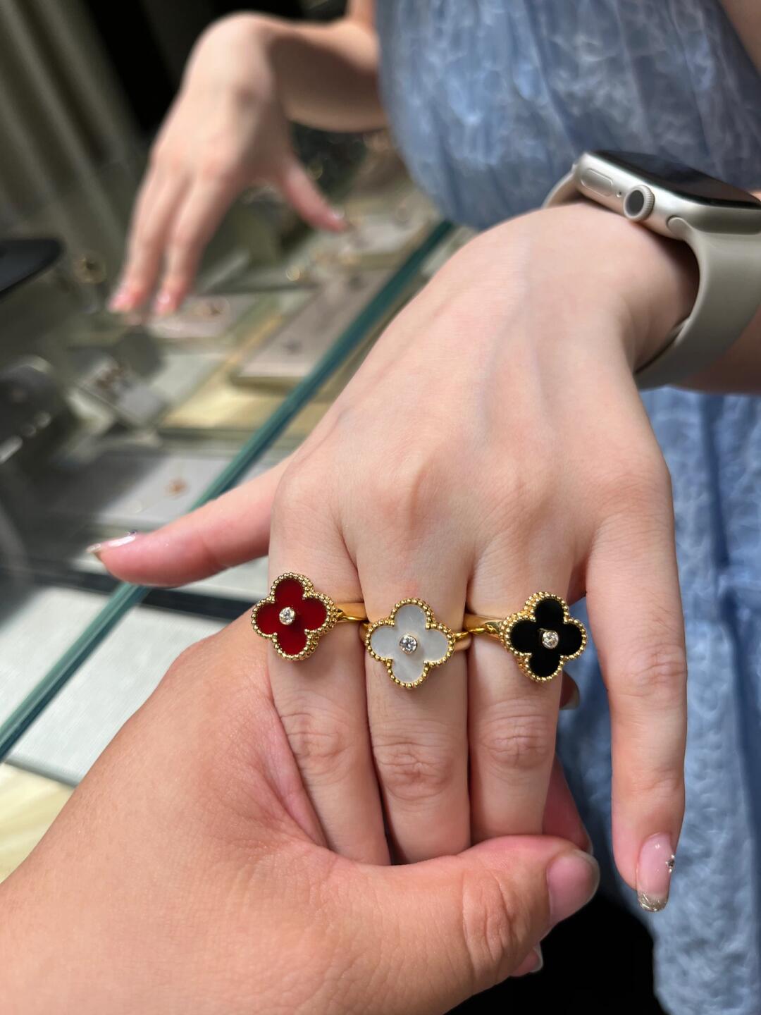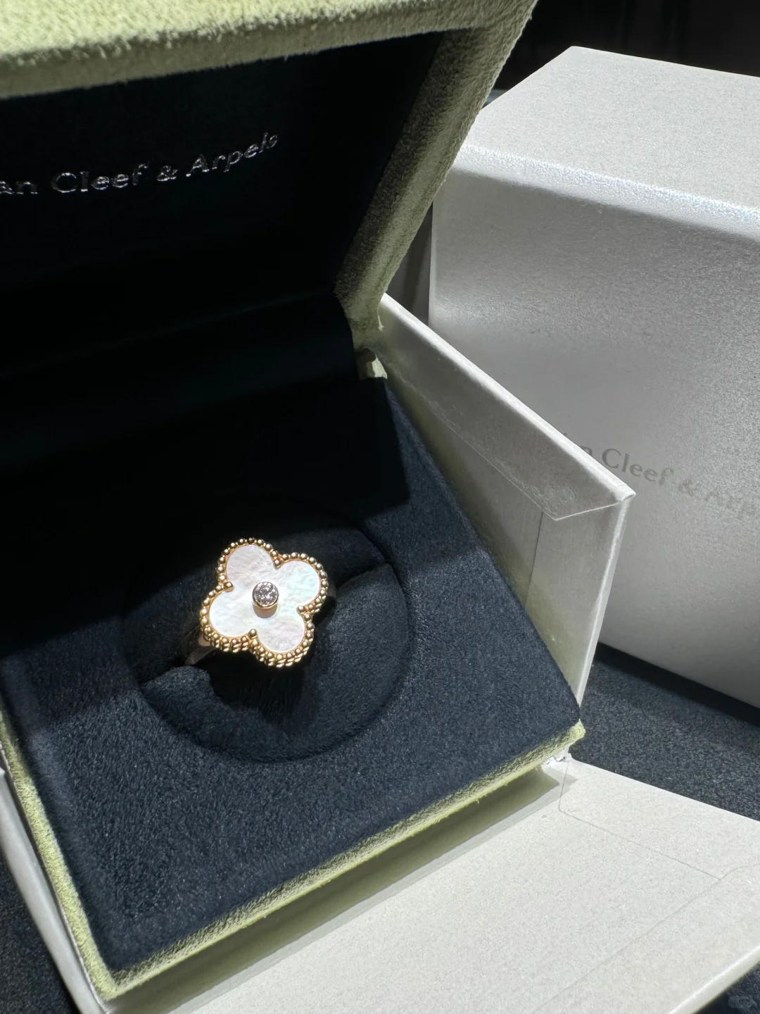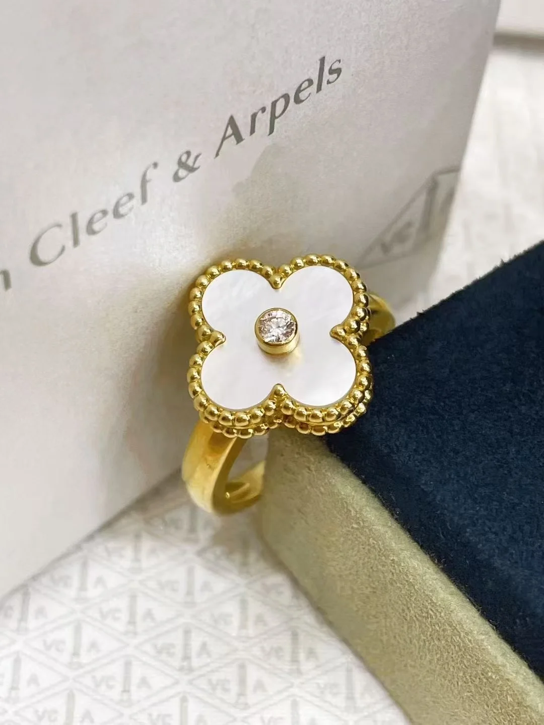 【ذهب عيار 18 مع علبة أصلية】خاتم فينتاج ألامبرا باللون الأبيض