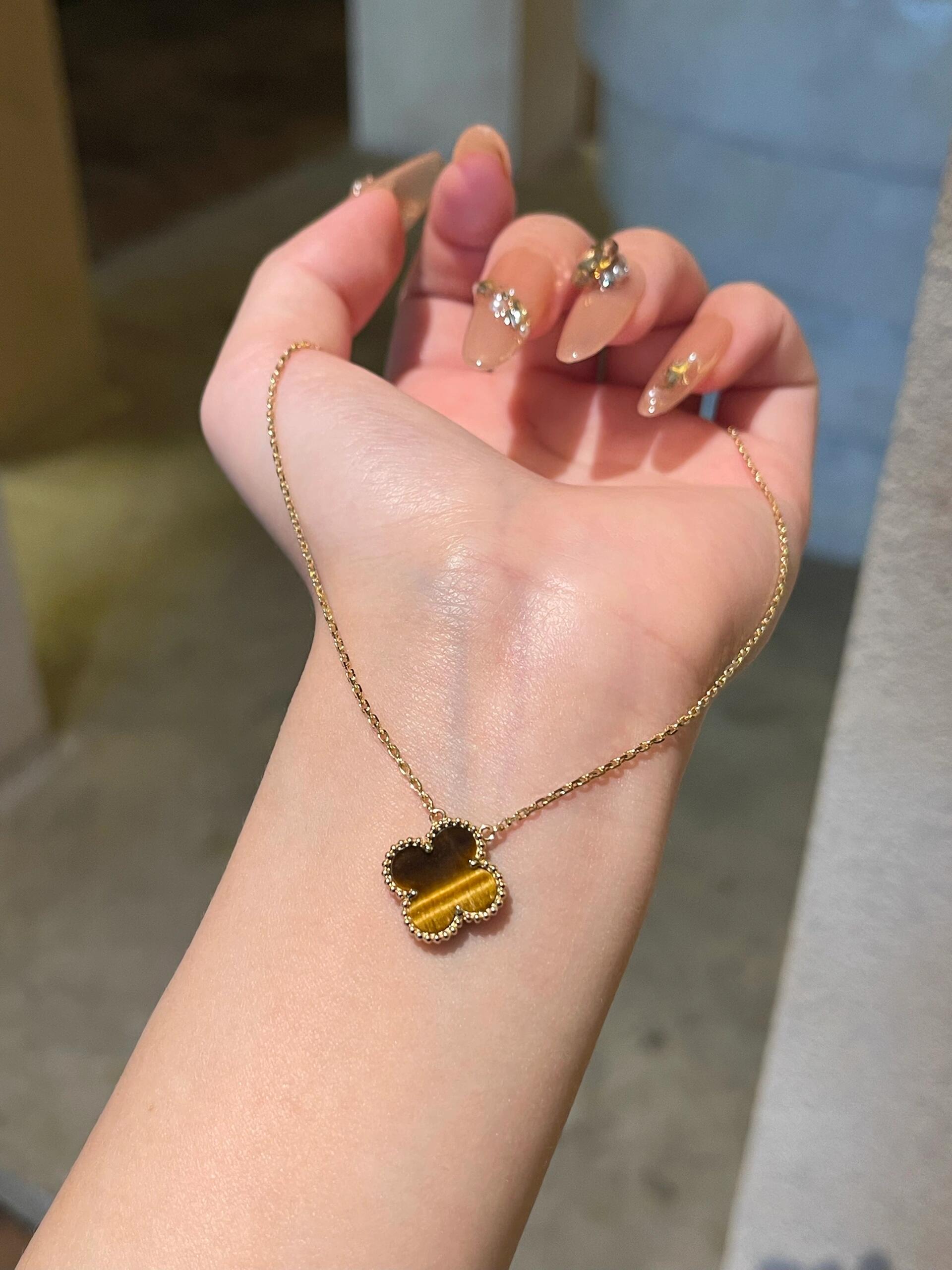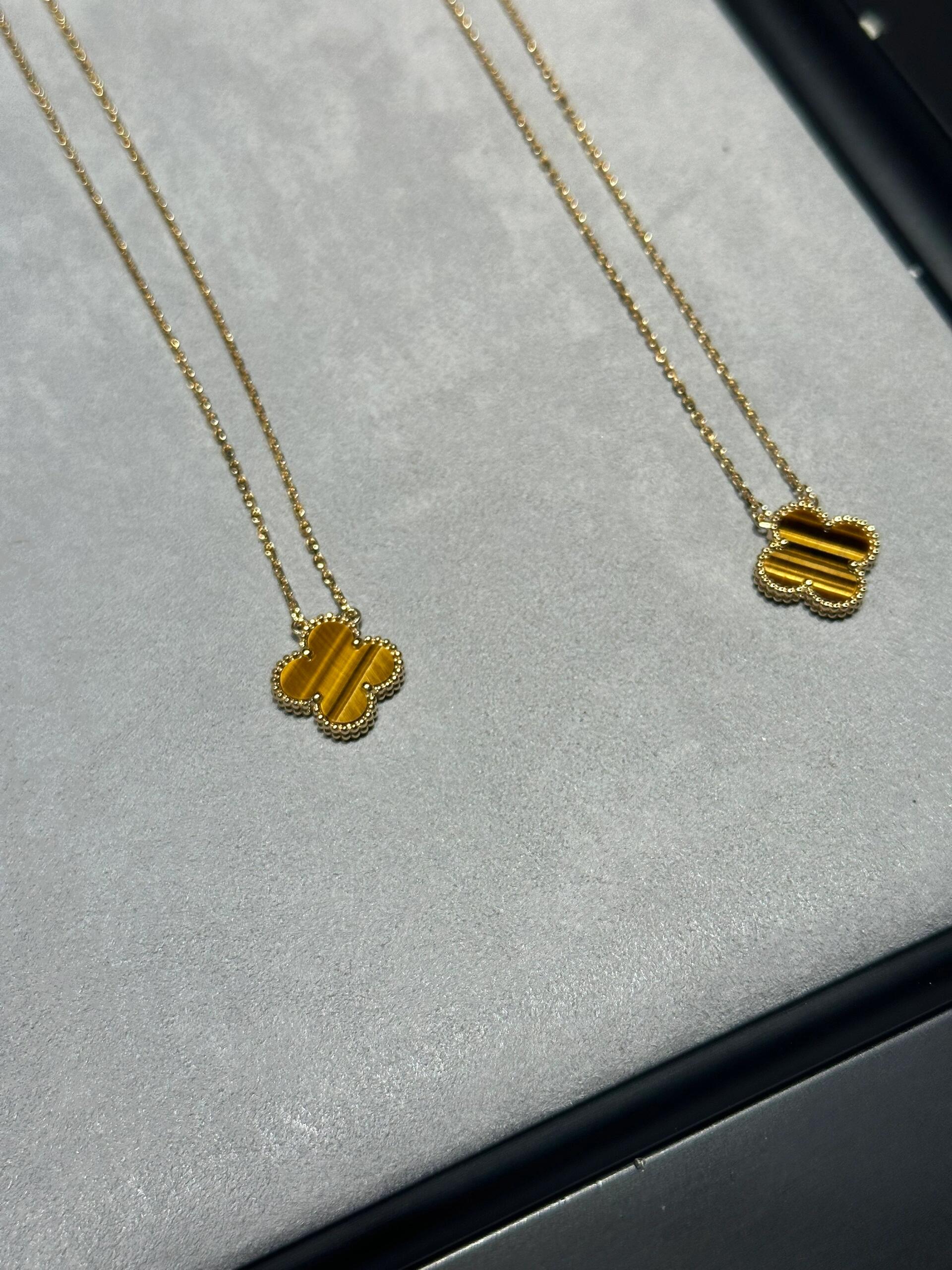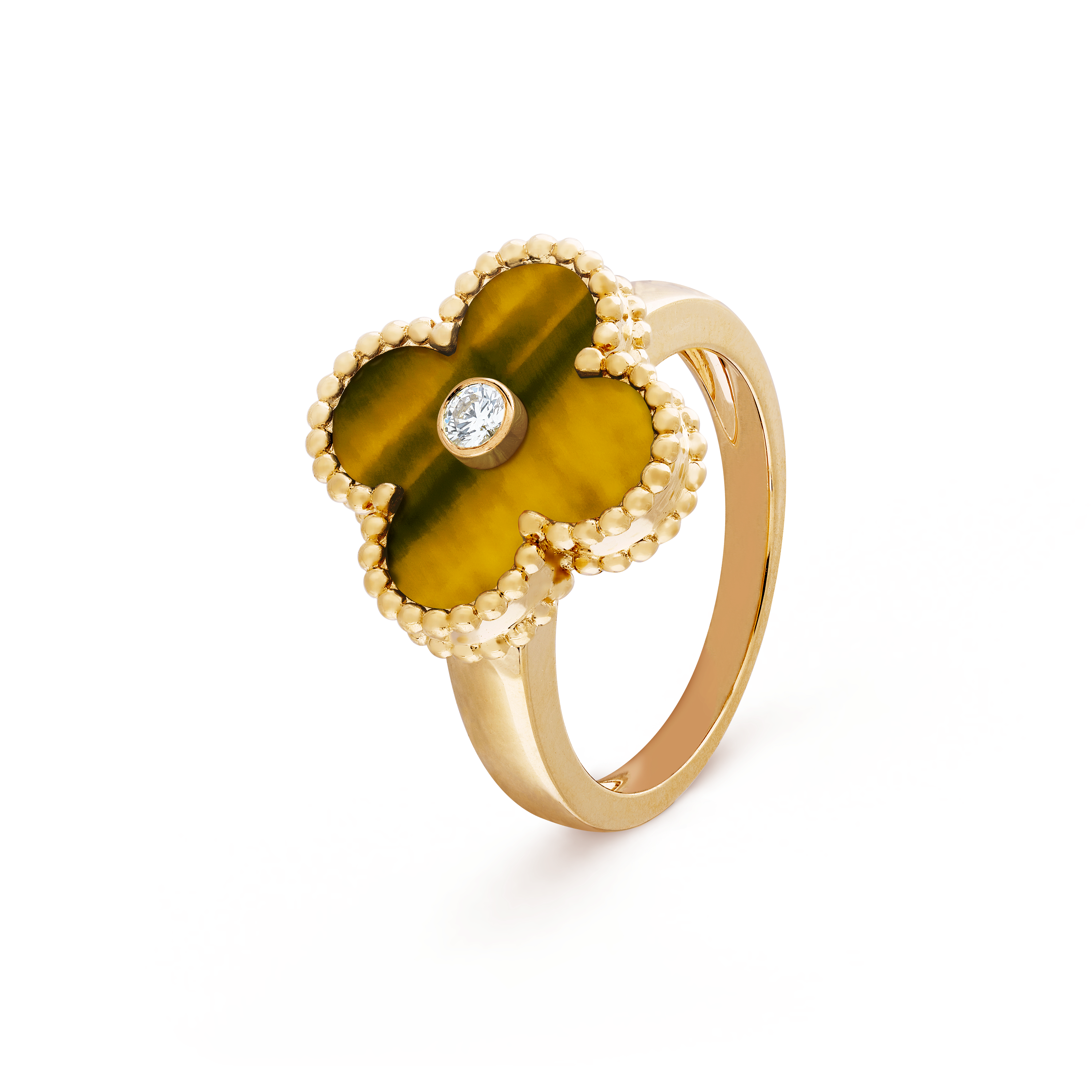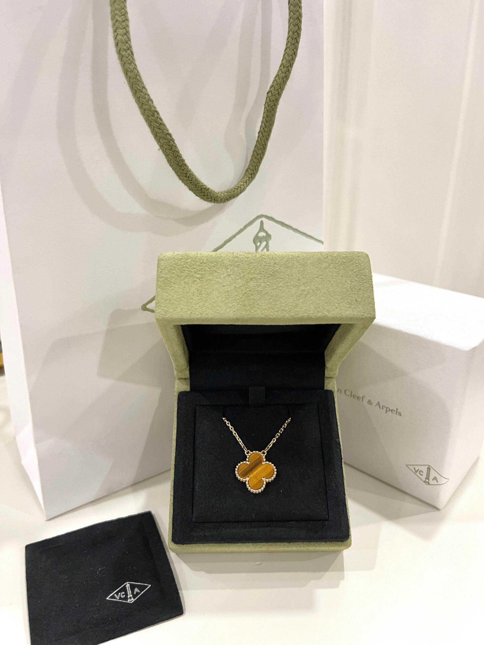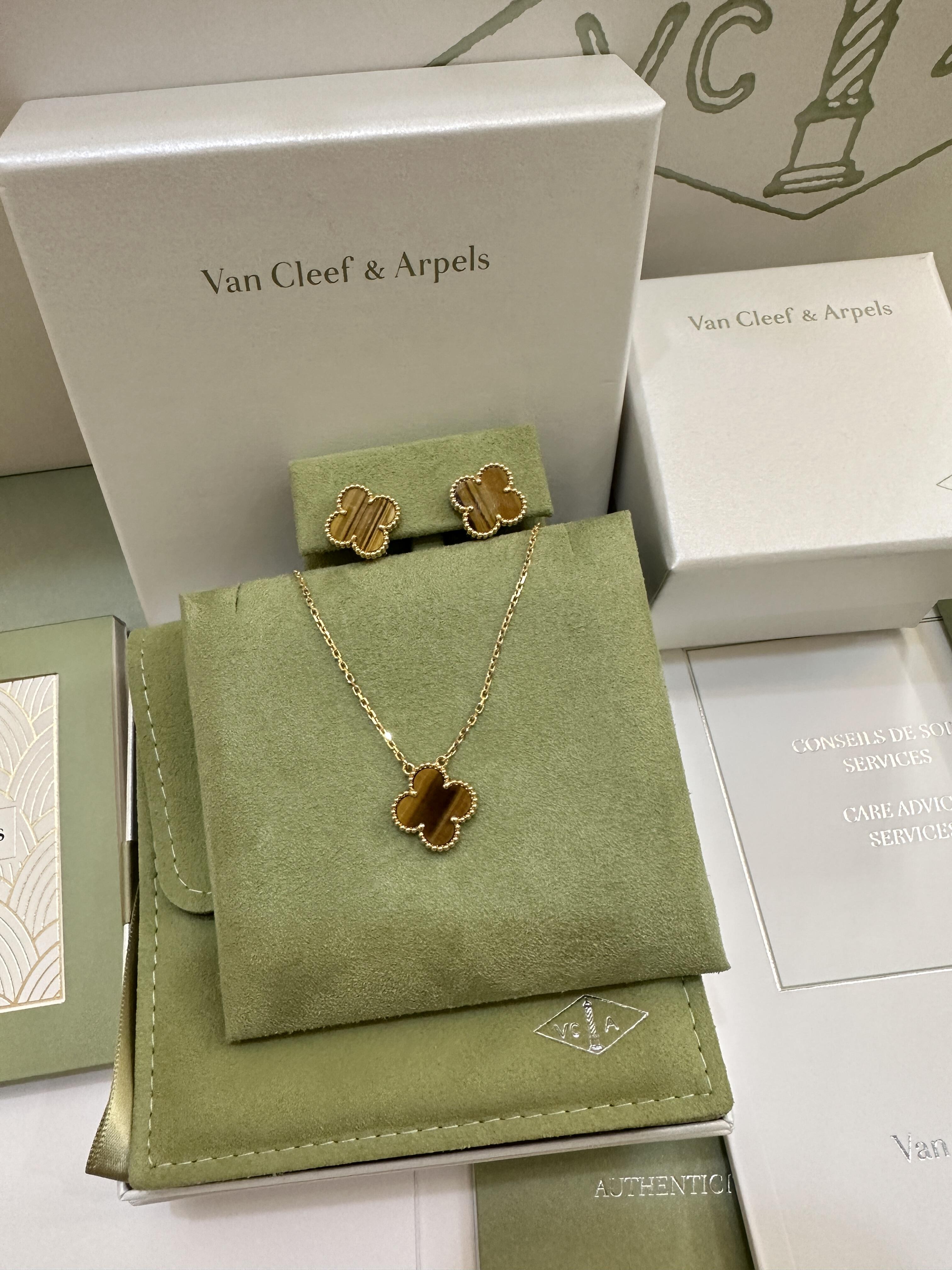 "طقم فينتاج ألامبرا الفاخر من فان كليف آند آربلز يجمع بين الأناقة والرقي، ويضم قلادة، خاتم، وأقراط أذن بتصميمات مستوحاة من رمز الحظ الشهير. مثالي لإطلالة متكاملة تضفي لمسة من الفخامة والأناقة على كل مناسبة. اكتشف روعة التفاصيل والحرفية العالية التي تجعل من هذا الطقم اختياراً لا مثيل له لعشاق الجمال والأناقة."