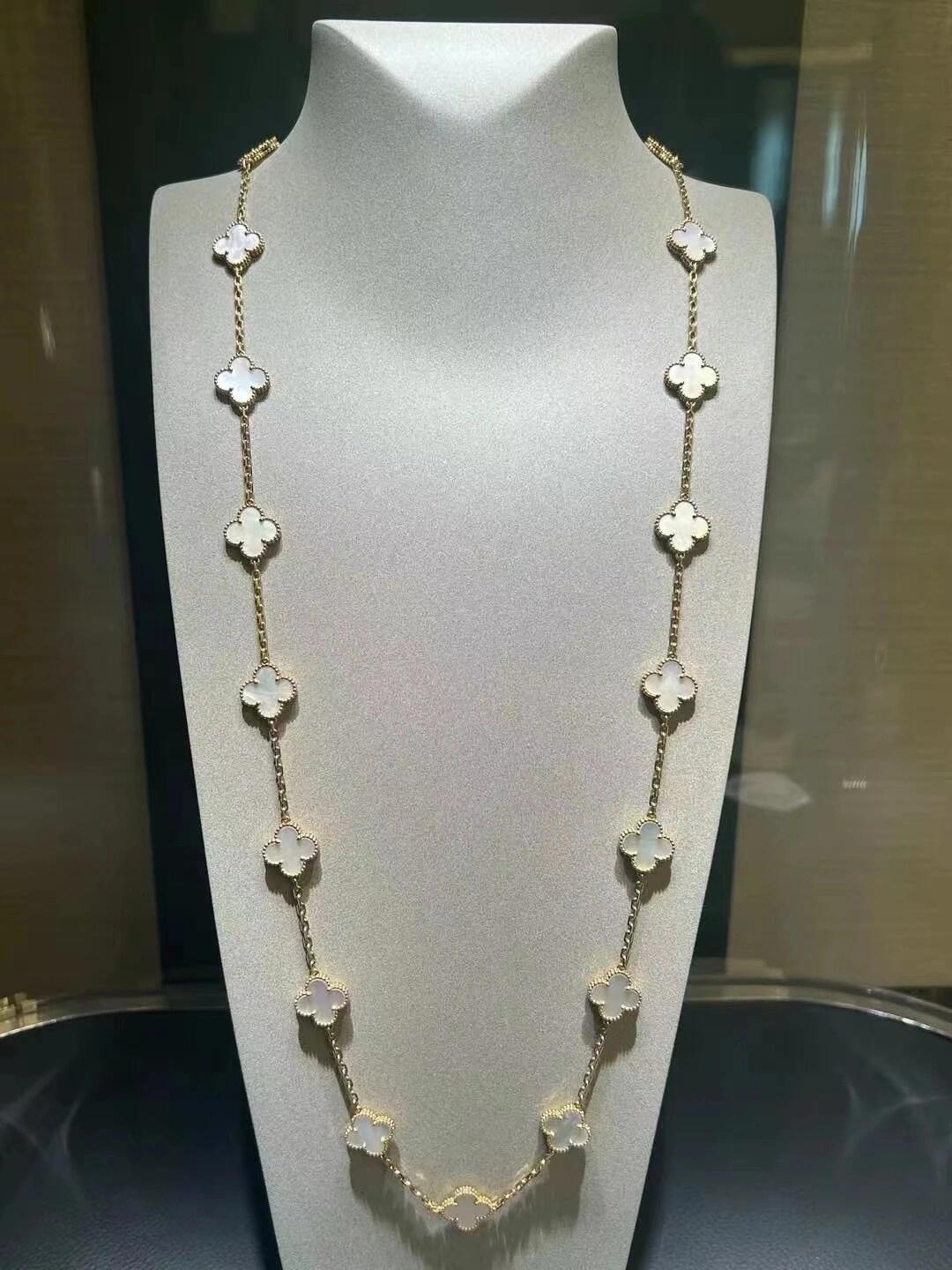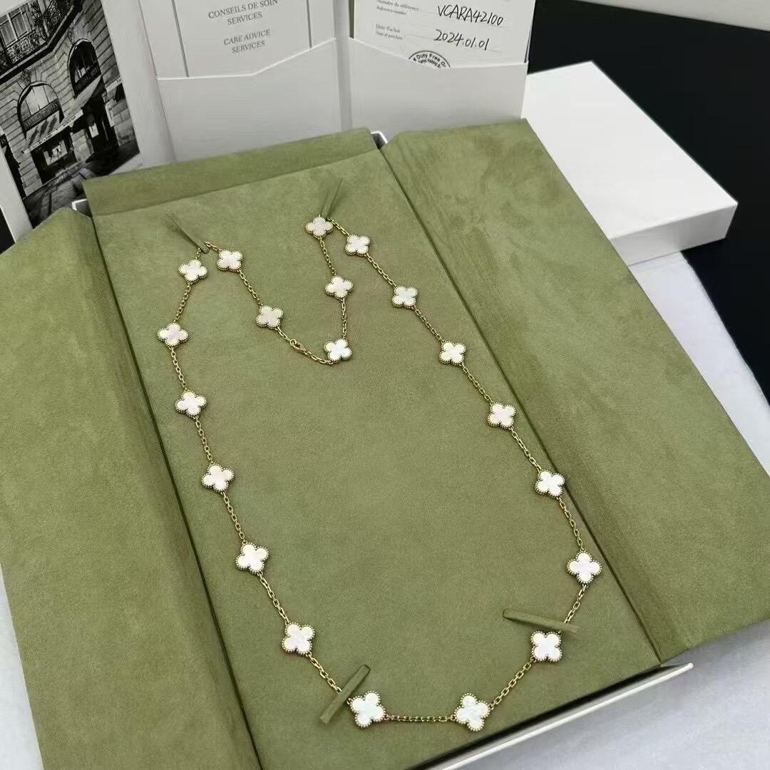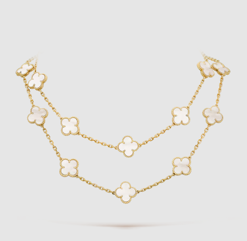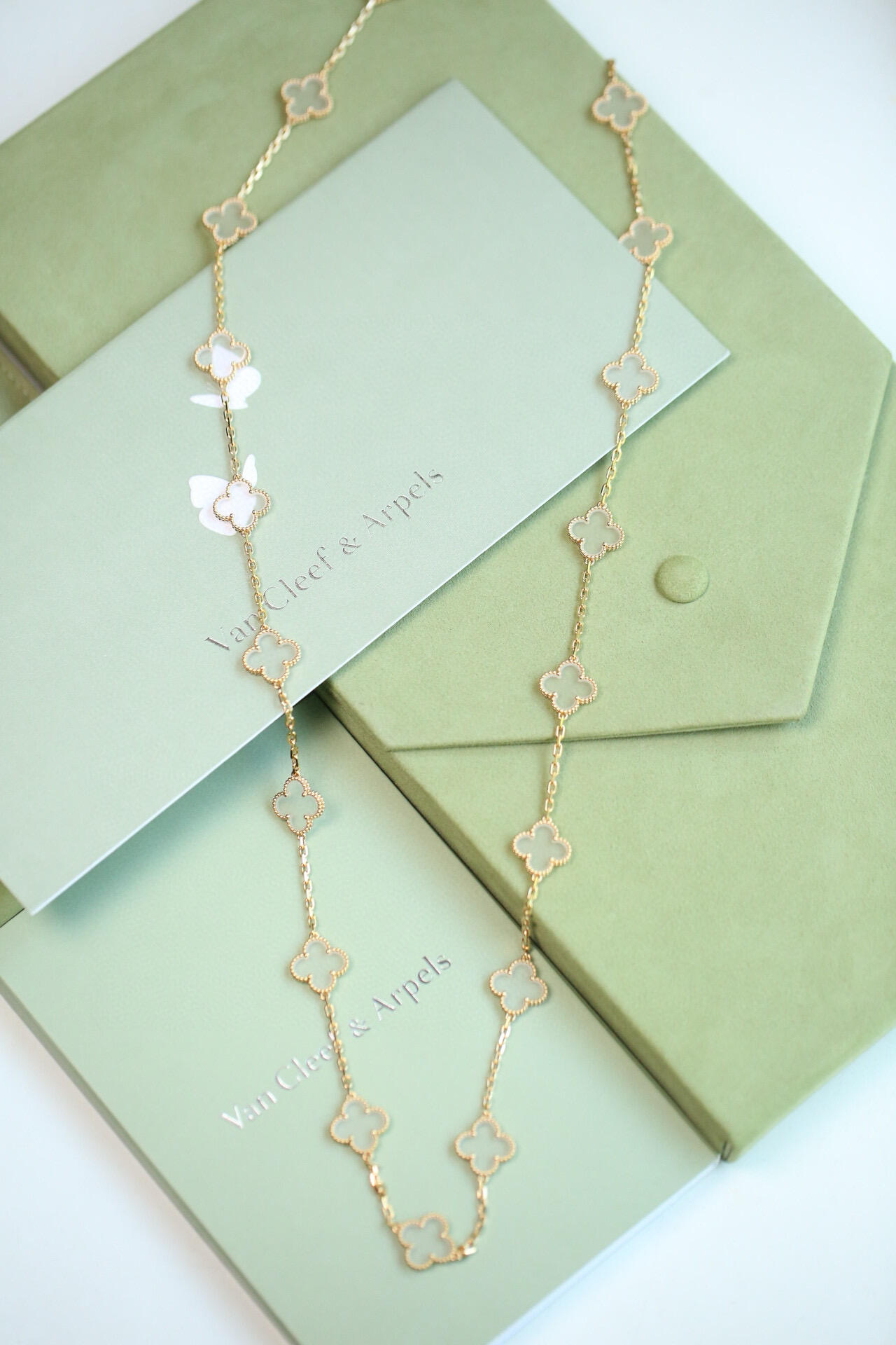 【ذهب عيار 18 مع علبة أصلية】طقم قلادة بيضاء من فان كليف أند آربلز - 2 قطعة