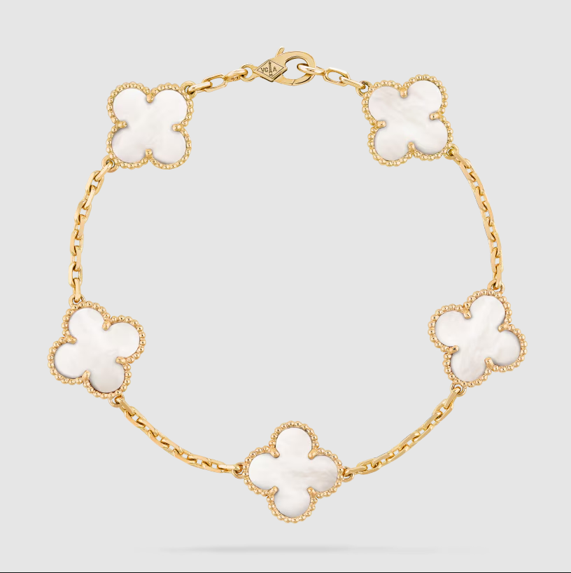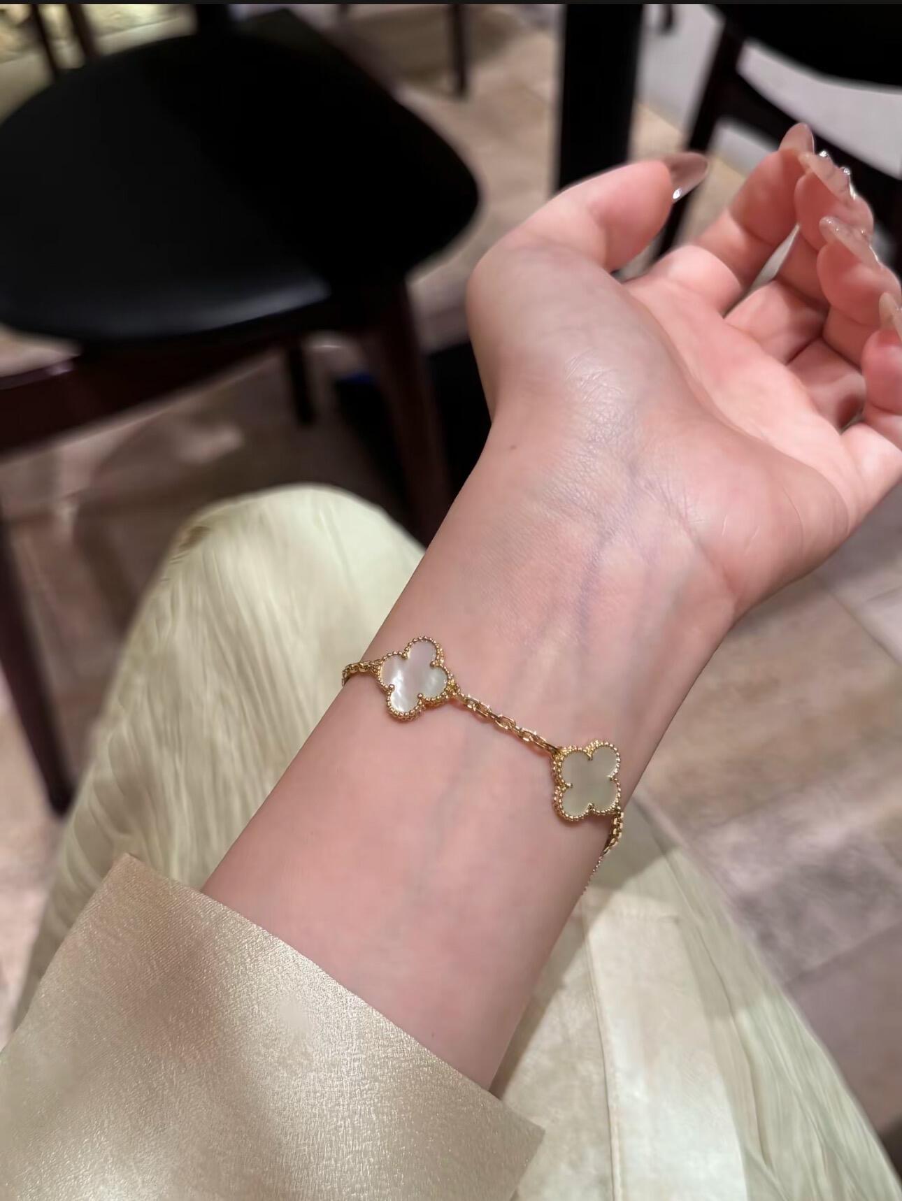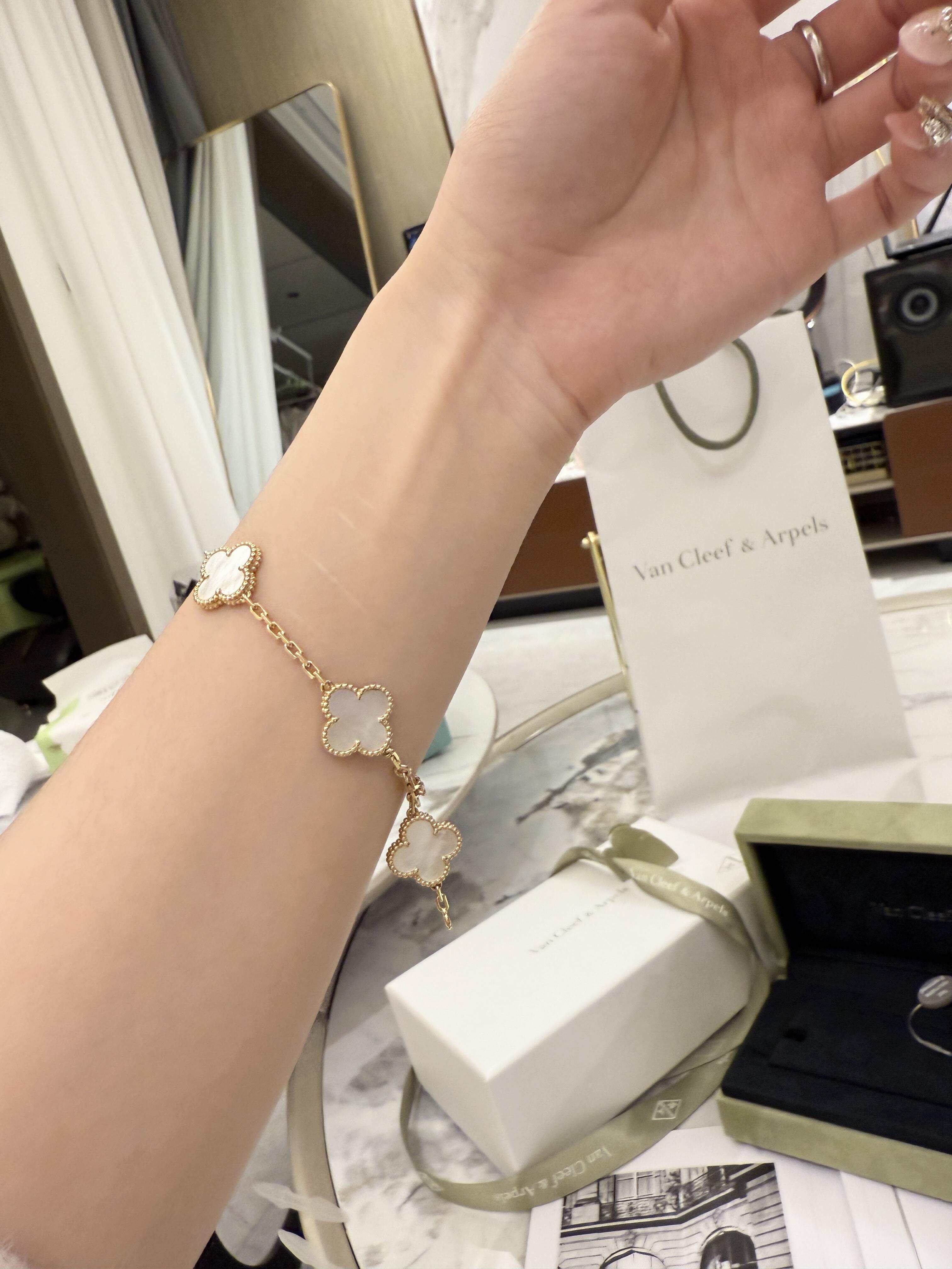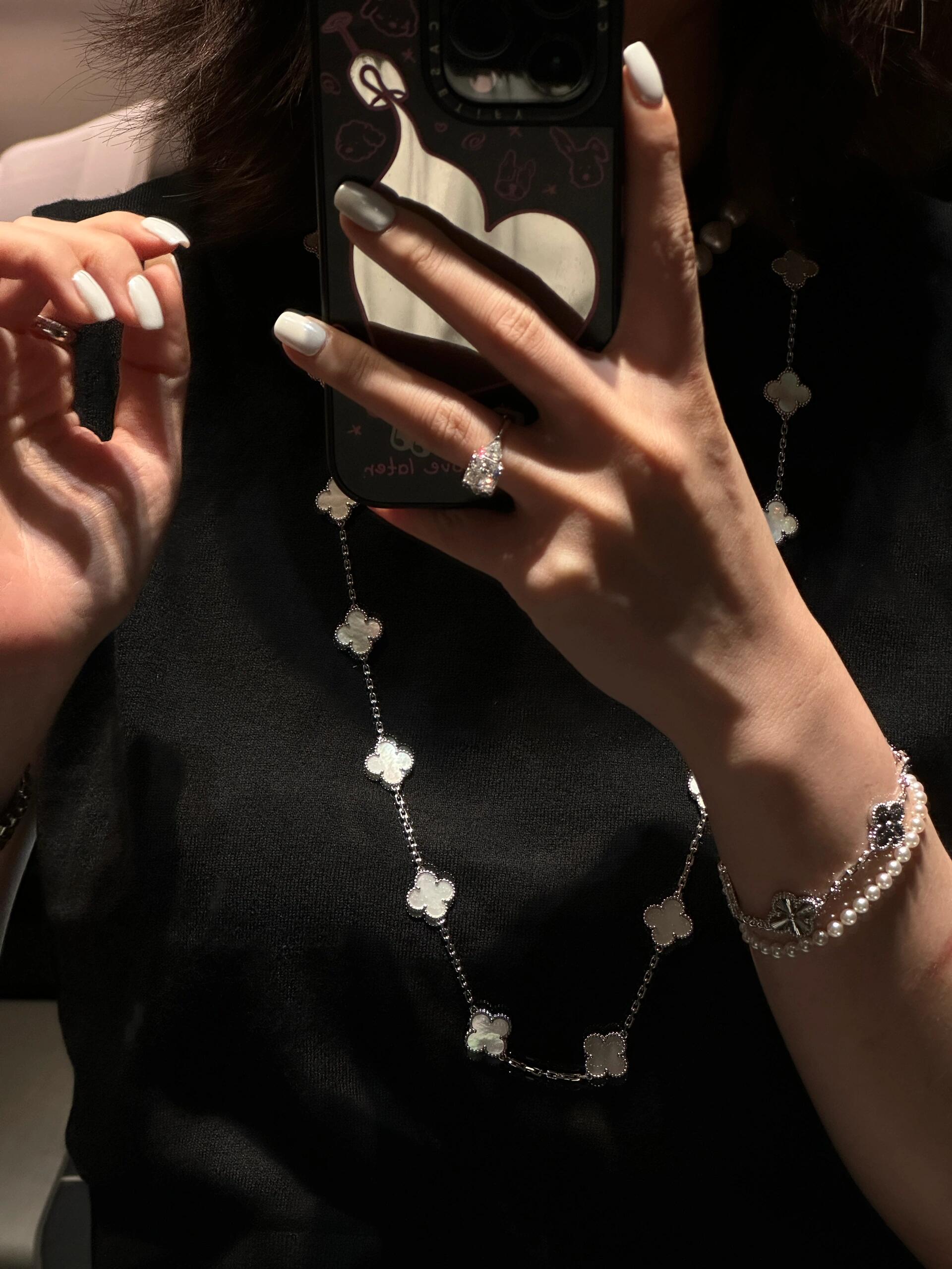 【ذهب عيار 18 مع علبة أصلية】طقم قلادة بيضاء من فان كليف أند آربلز - 2 قطعة