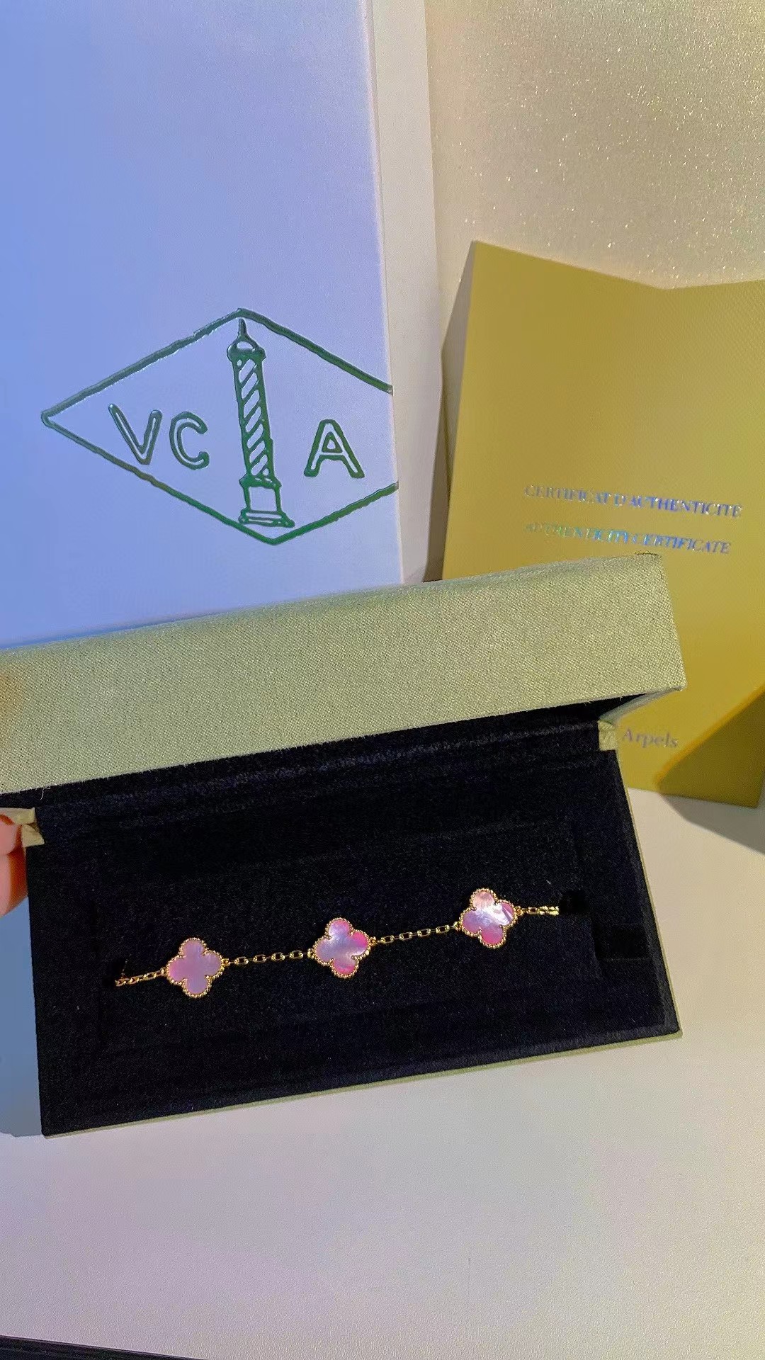 【ذهب عيار 18 مع علبة أصلية】سوار فينتاج ألامبرا، 5 حلي زخرفية