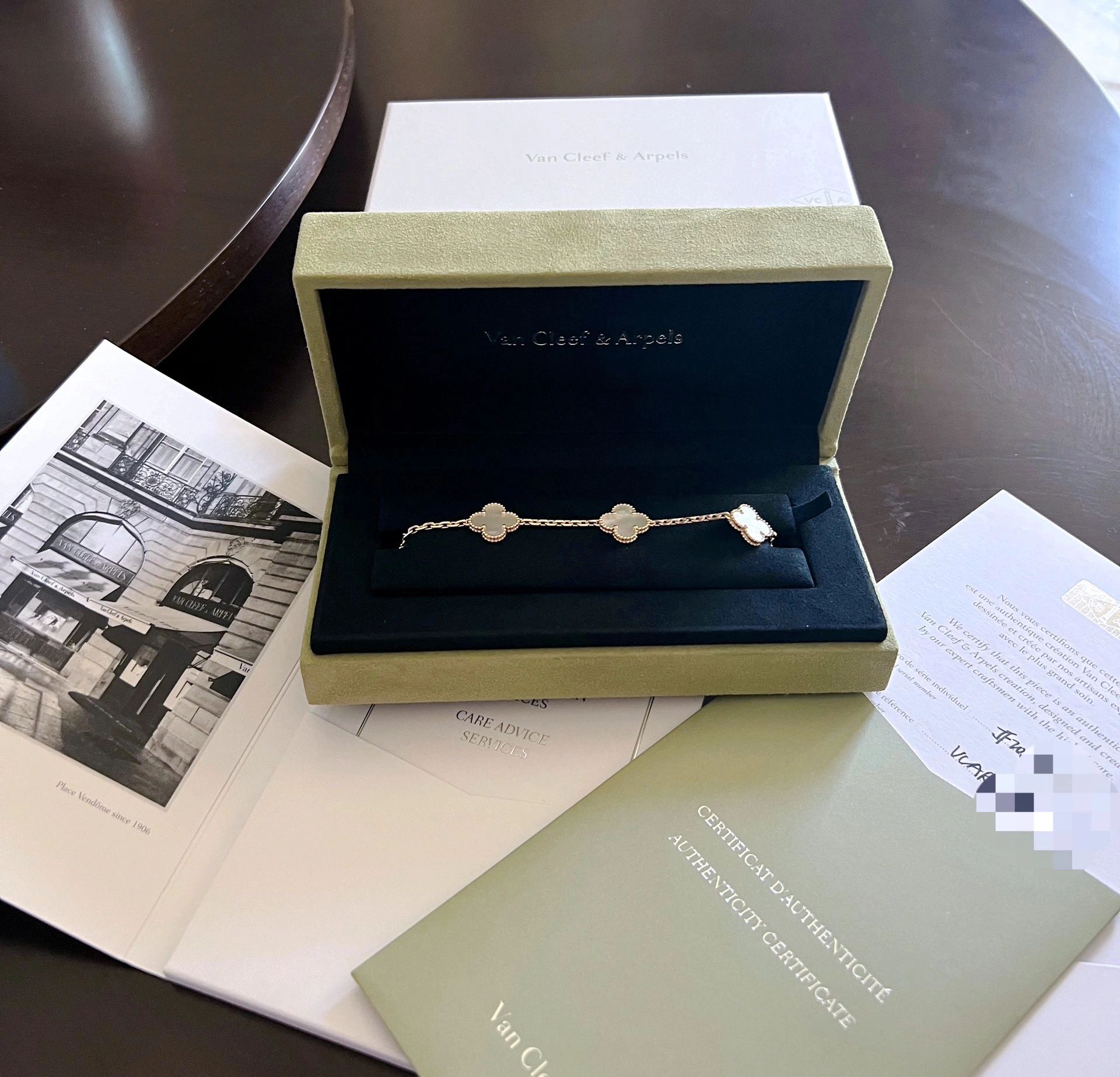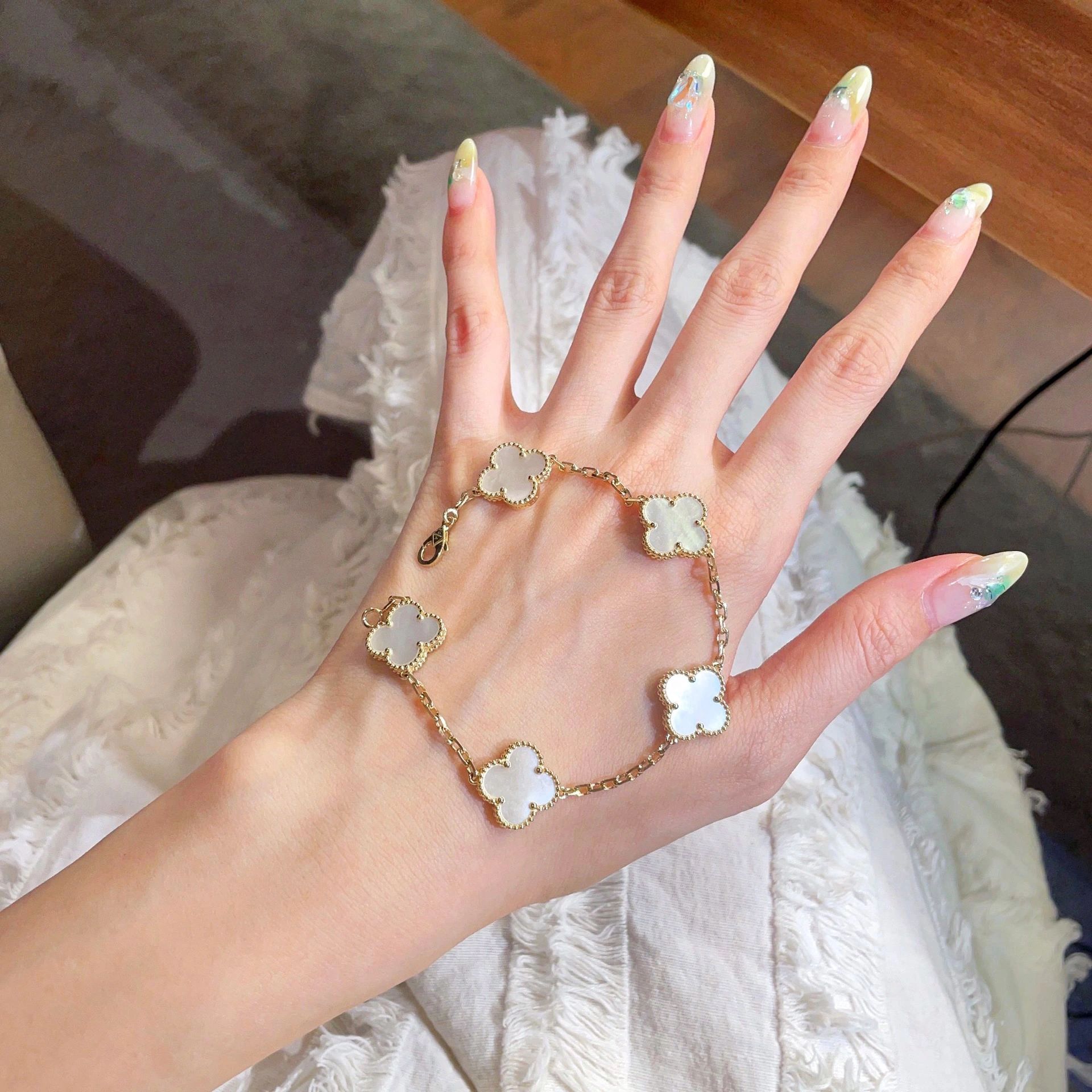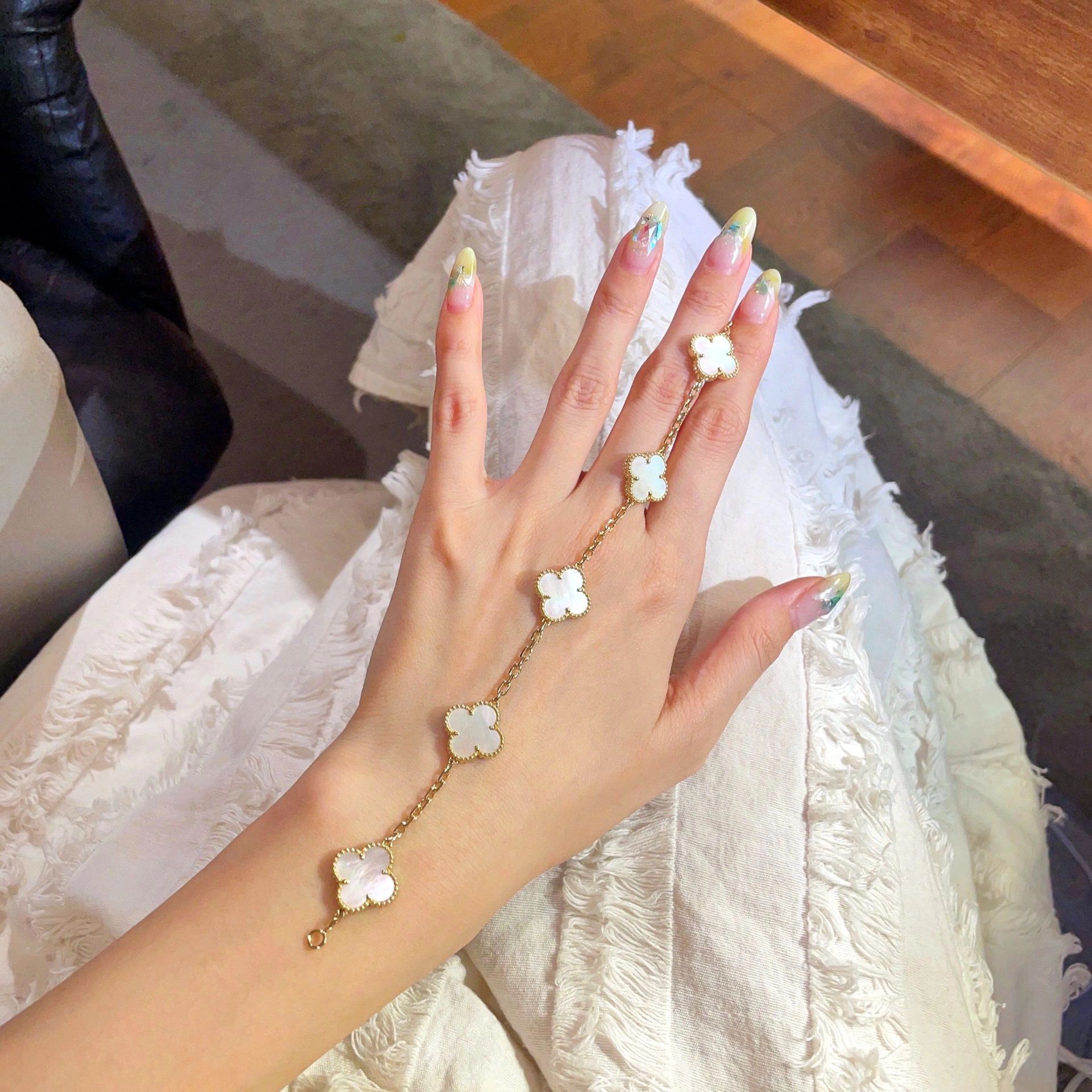 سوار فينتاج ألامبرا، 5 حلي زخرفية، ذهب أصفر 18 قيراط، عرق اللؤلؤ الأبيض